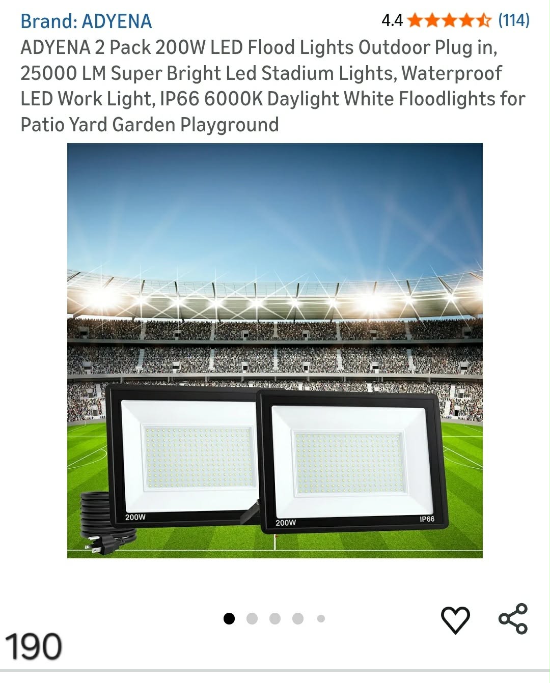ADYENA 2 Pack 200W LED Flood Lights Outdoor Plug in. Lv190