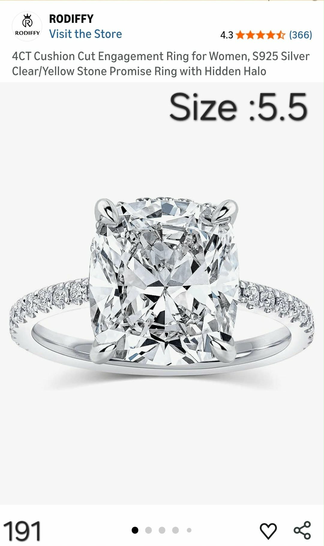 4CT Cushion Cut Engagement Ring for Women. Lv191