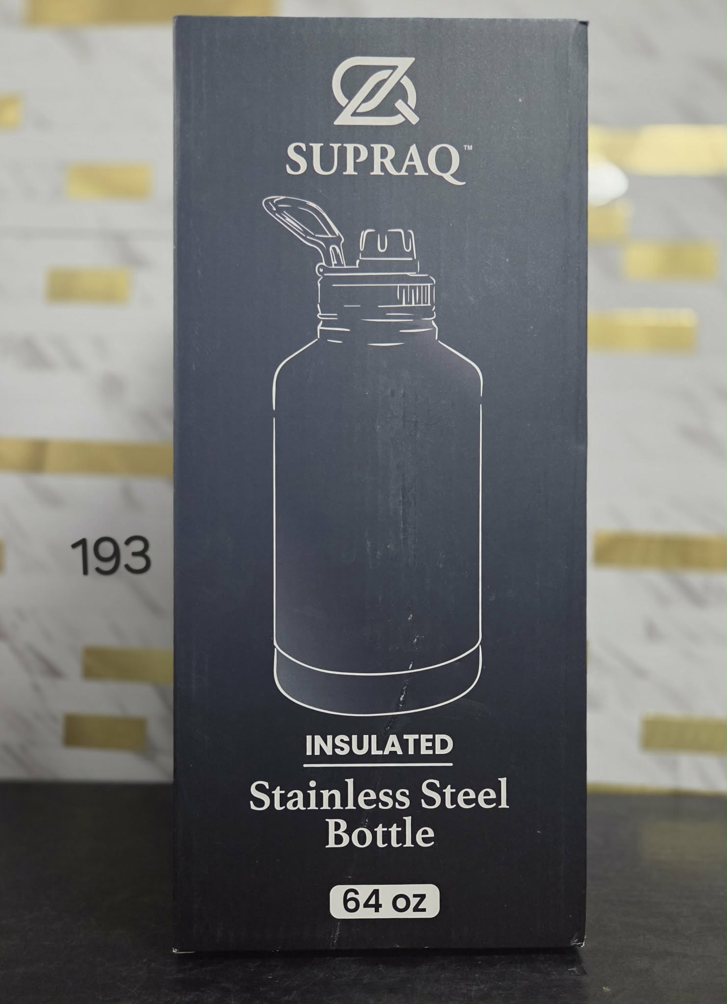 Half Gallon Water Bottle Insulated with Straw & 3 Lids, Coolflask 64 oz Water Jug Large Metal Stainless Steel Wide Mouth for Sports, Gym or Office. Lv193