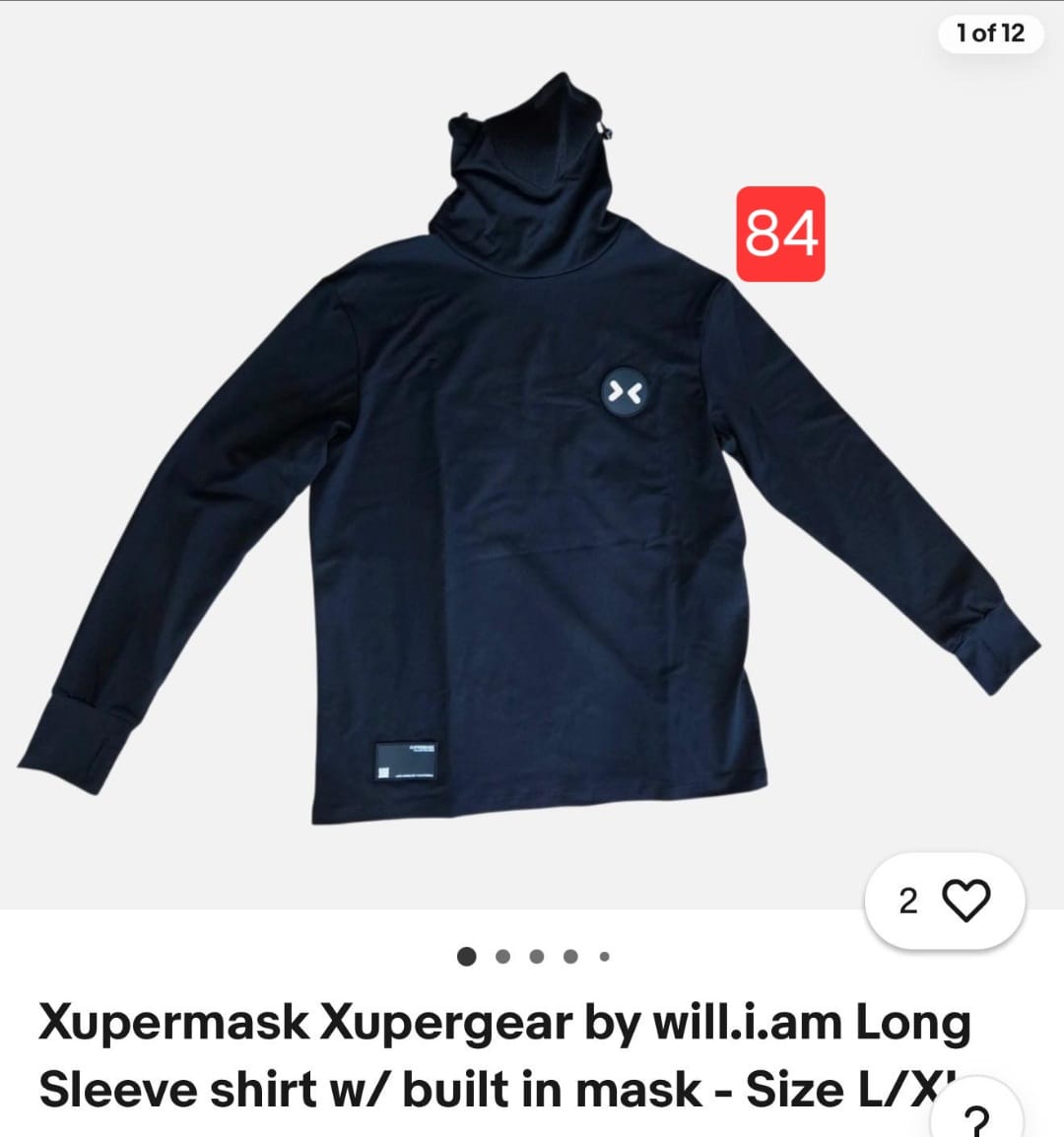 Xupermask Xupergear by will.i.am Long Sleeve shirt w/ built in mask - Size L/X. 84
