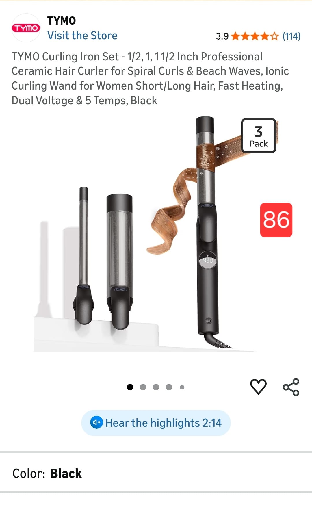 TYMO Curling Iron Set. 86