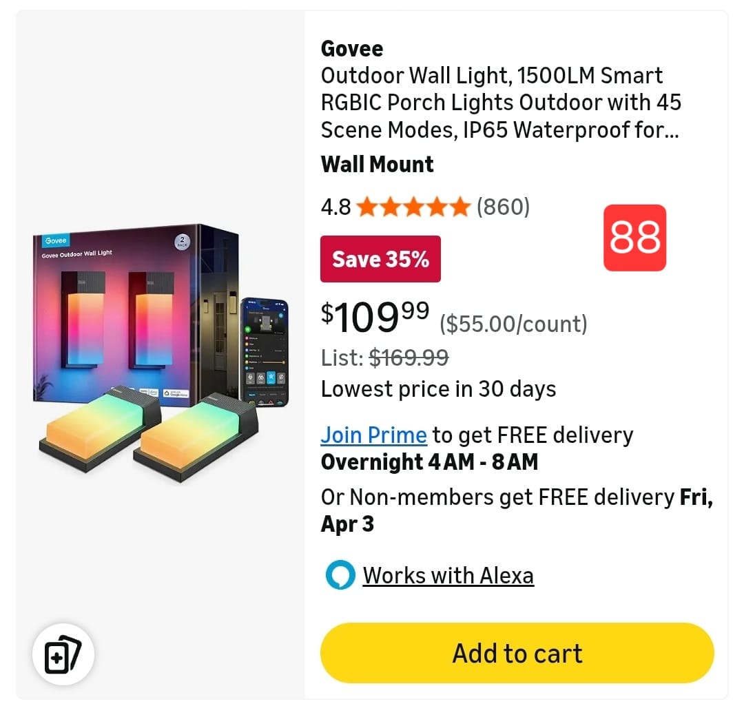 Outdoor Wall Light, 1500LM Smart RGBIC Porch Lights Outdoor with 45 Scene Modes. 88