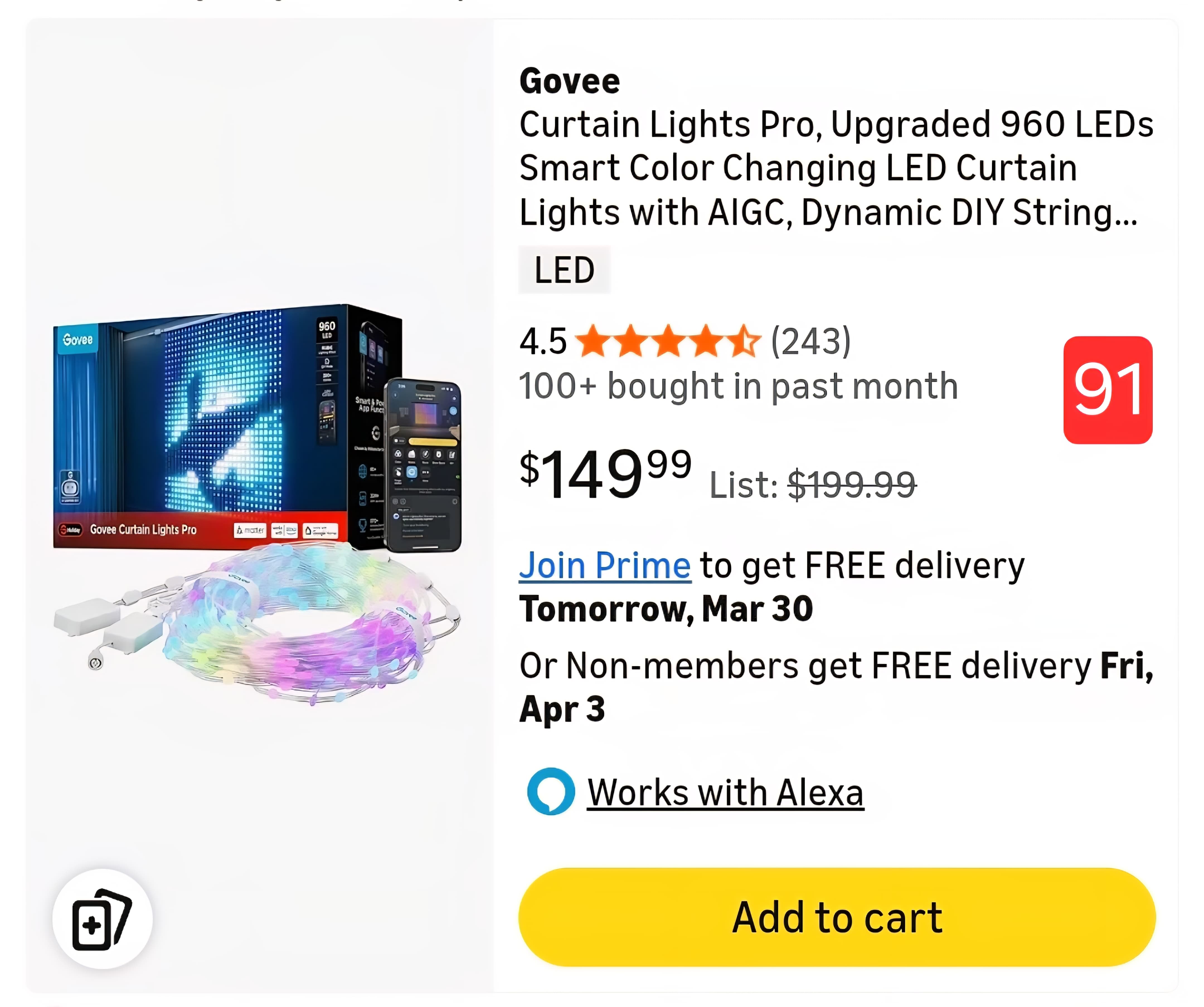 Curtain Lights Pro, Upgraded 960 LEDs Smart Color Changing LED Curtain Lights with AIGC, Dynamic DIY String... 91