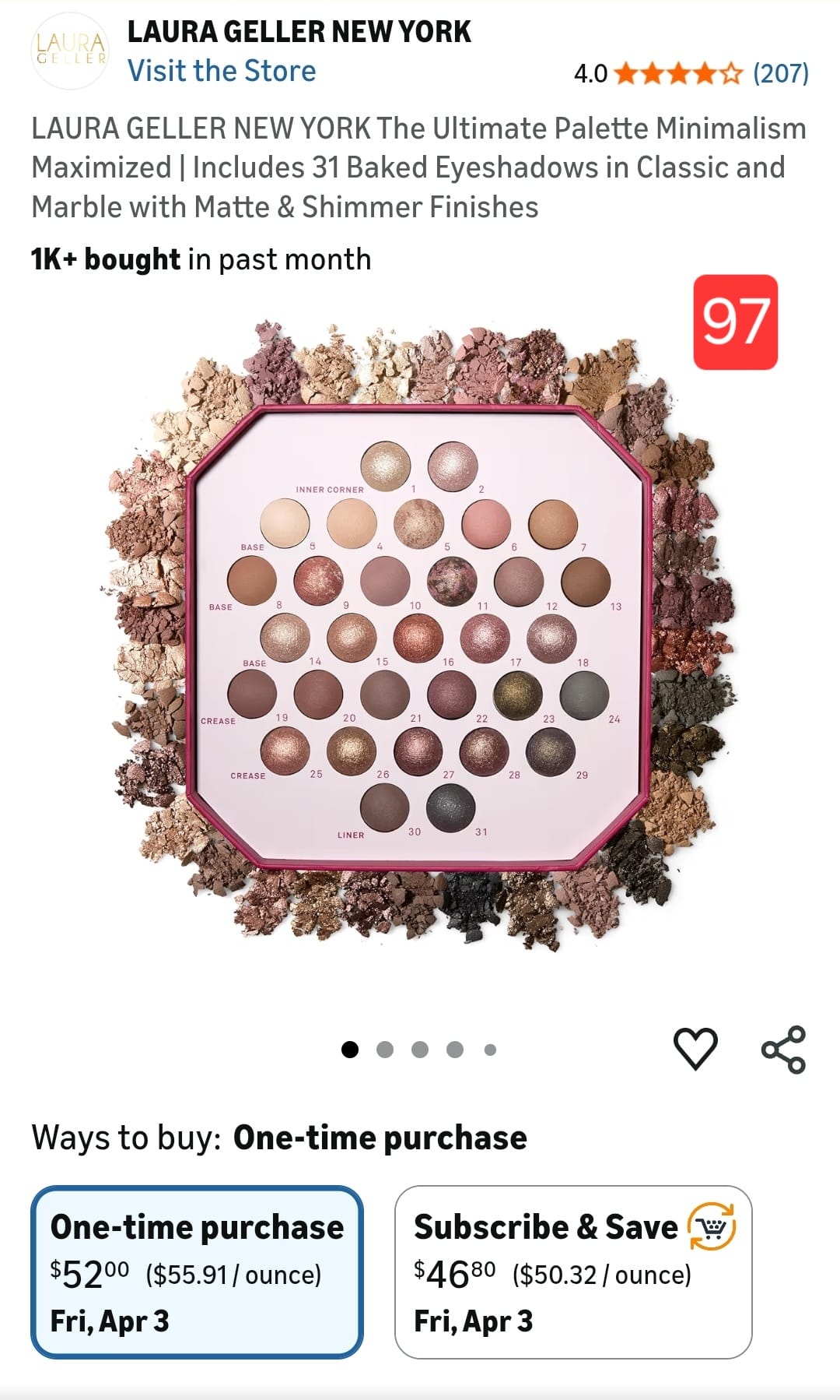 LAURA GELLER NEW YORK The Ultimate Palette Minimalism Maximized | Includes 31 Baked Eyeshadows in Classic and Marble with Matte & Shimmer Finishes. 97