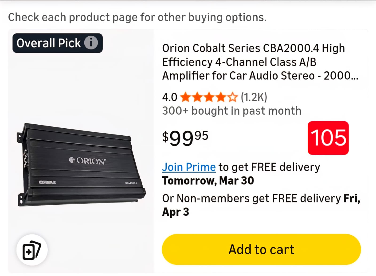 Orion Cobalt Series CBA2000.4 High Efficiency 4-Channel Class A/B Amplifier for Car Audio Stereo - 2000...105