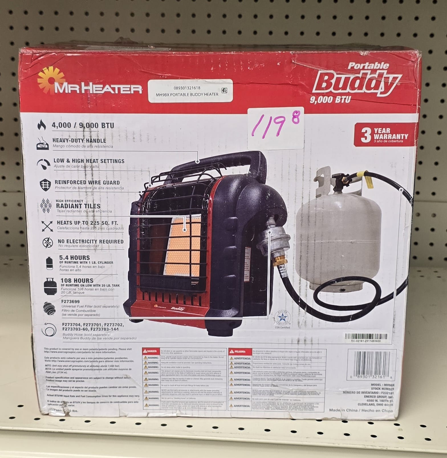Mr. Heater MH9BX-Massachusetts/Canada approved portable Propane Heater. 119