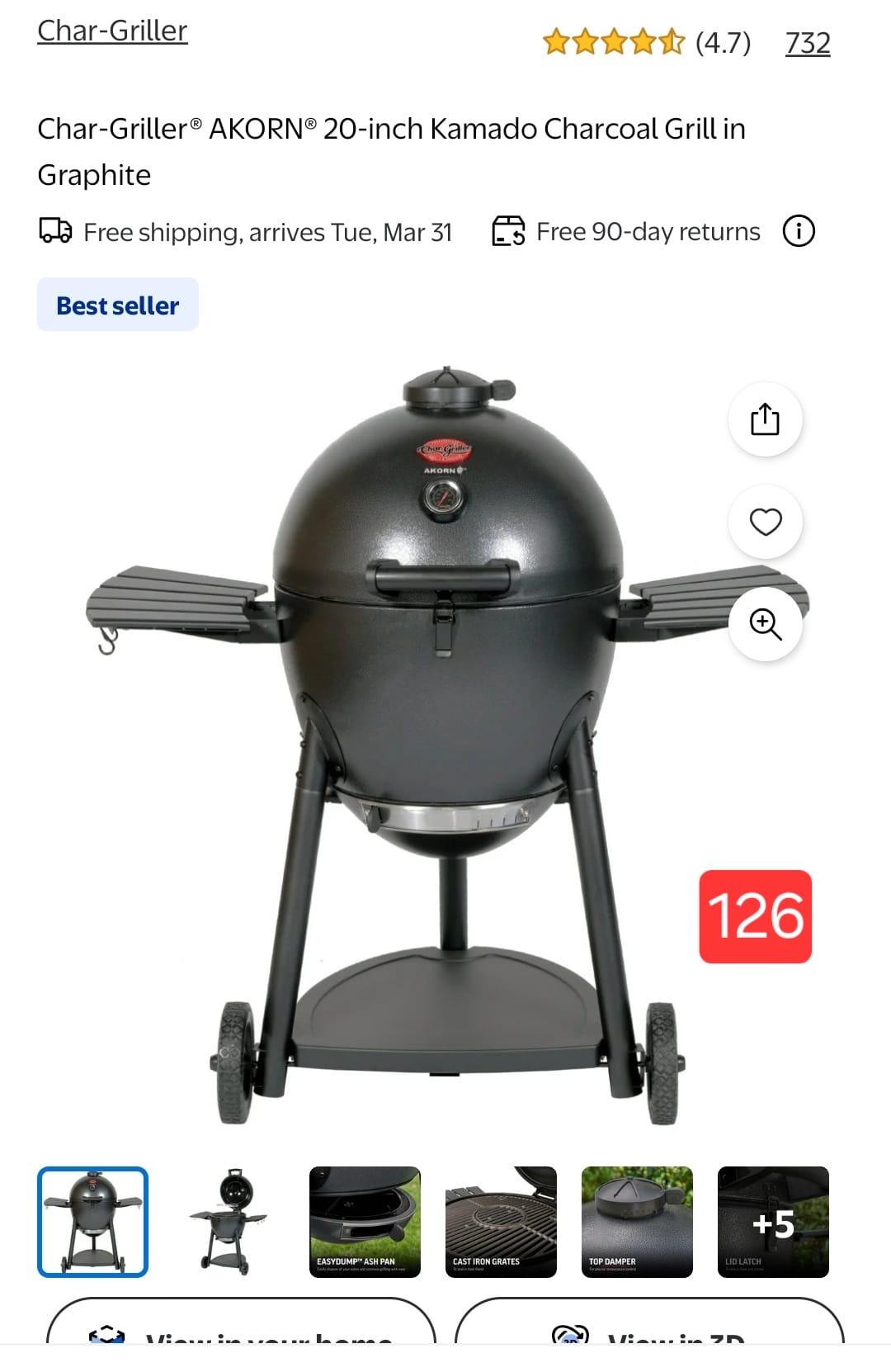 Char-Griller® AKORN 20-inch Kamado Charcoal Grill in Graphite. 126