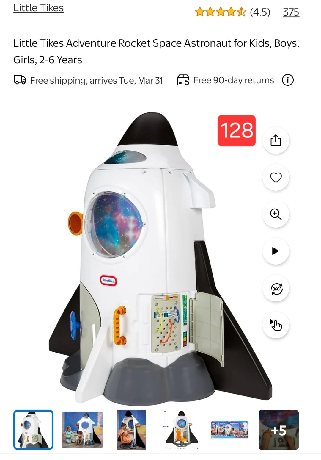 Little Tikes Adventure Rocket Space Astronaut for Kids, Boys, Girls, 2-6 Years. 128