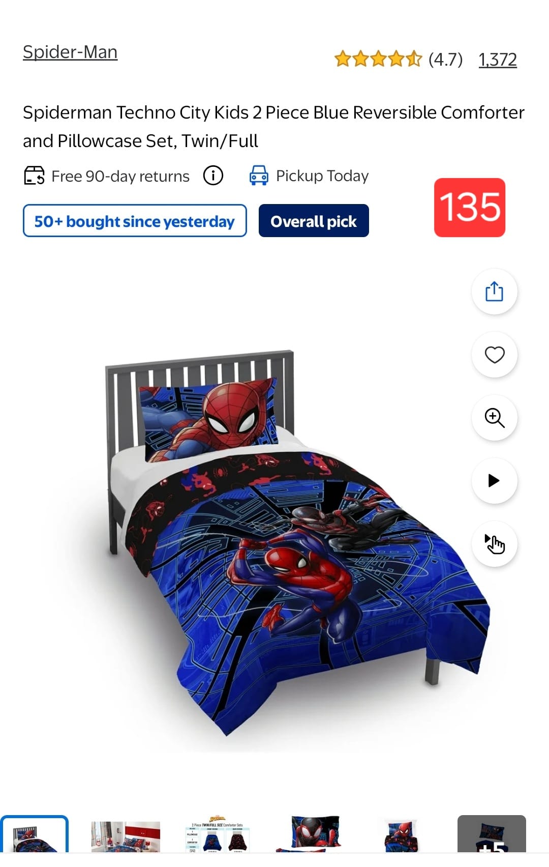 Spiderman Techno City Kids 2 Piece Blue Reversible Comforter and Pillowcase Set, Twin/Full. 135
