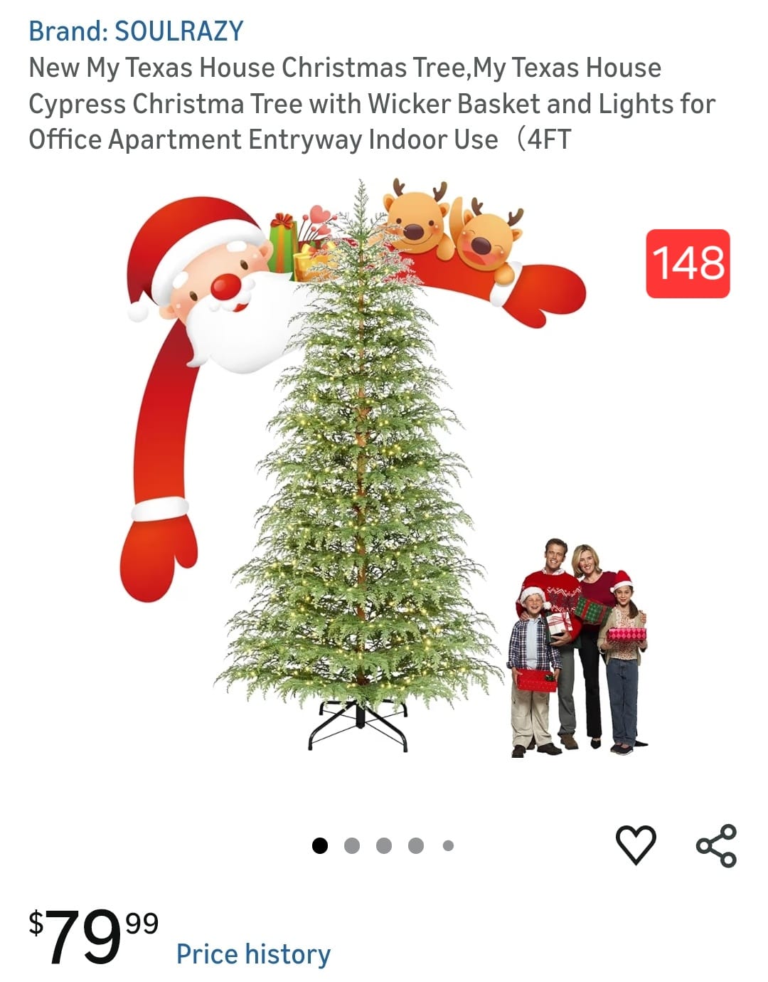 New My Texas House Christmas Tree, My Texas House Cypress Christma Tree with Wicker Basket and Lights for Office Apartment Entryway Indoor Use (4FT. 148