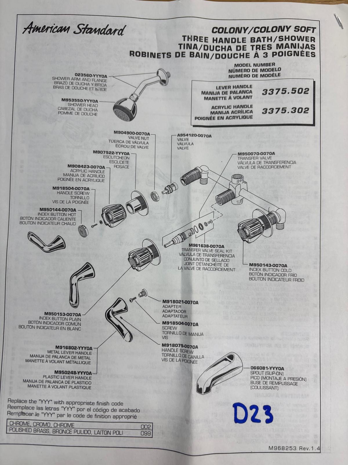 American Standard THREE HANDLE BATH/SHOWER #D23