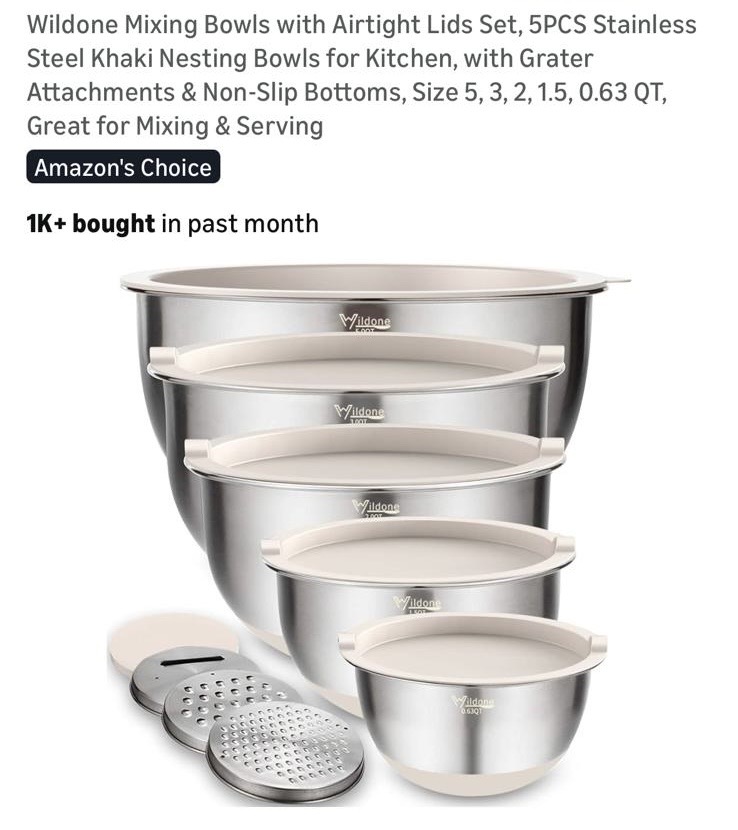 Wildone Mixing Bowls with Airtight Lids Set #D33