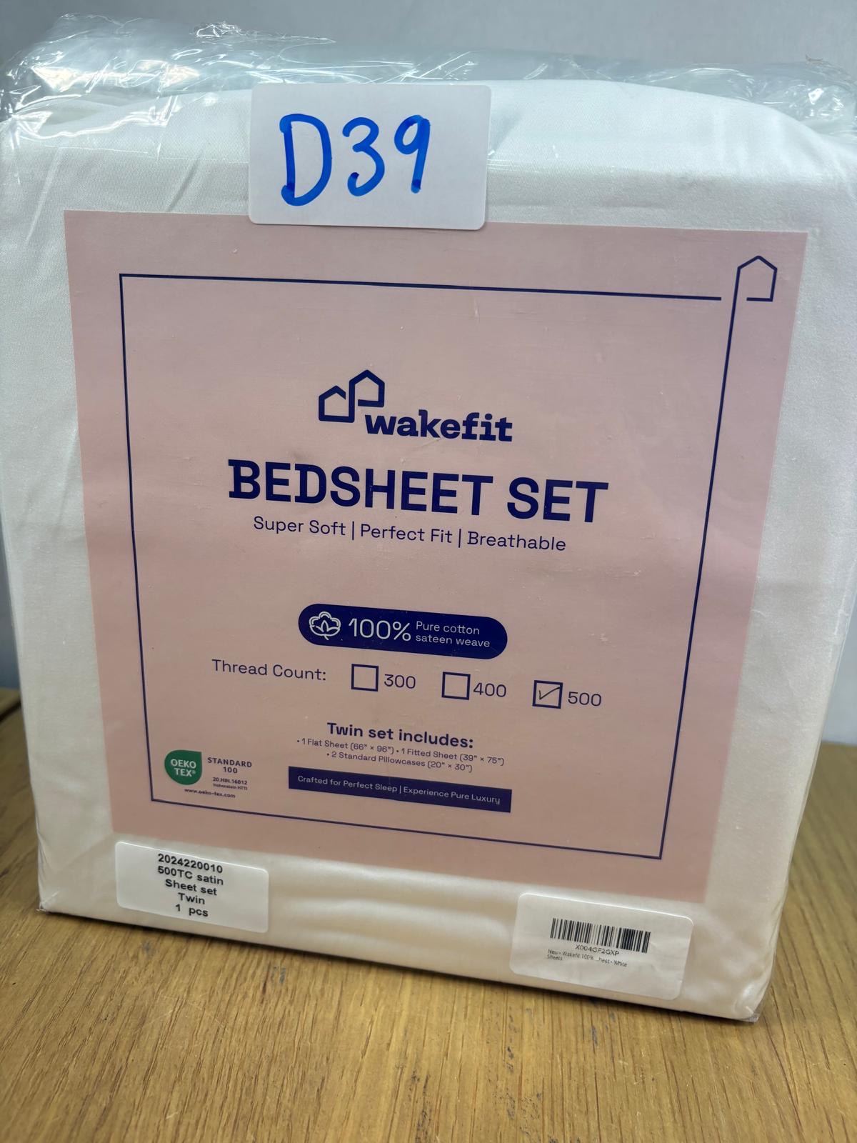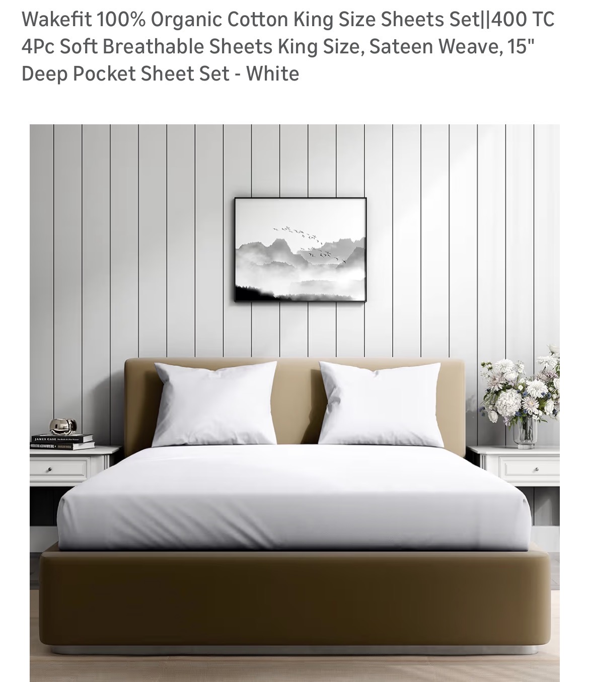 Wakefit 100% Organic Cotton King Size Sheets Set||500 TC 4Pc #D39