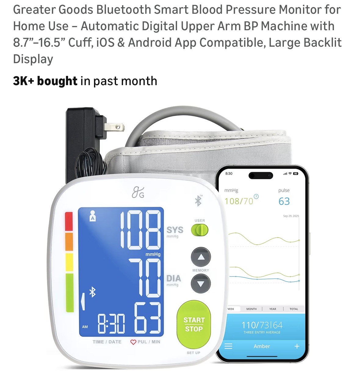 Greater Goods Bluetooth Smart Blood Pressure Monitor for Home Use #D68