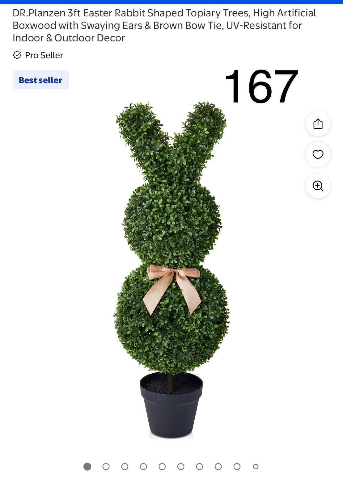 DR.Planzen 3ft Easter Rabbit Shaped Topiary Trees, High Artificial Boxwood with Swaying Ears & Brown Bow Tie, UV-Resistant for Indoor & Outdoor Decor. 167