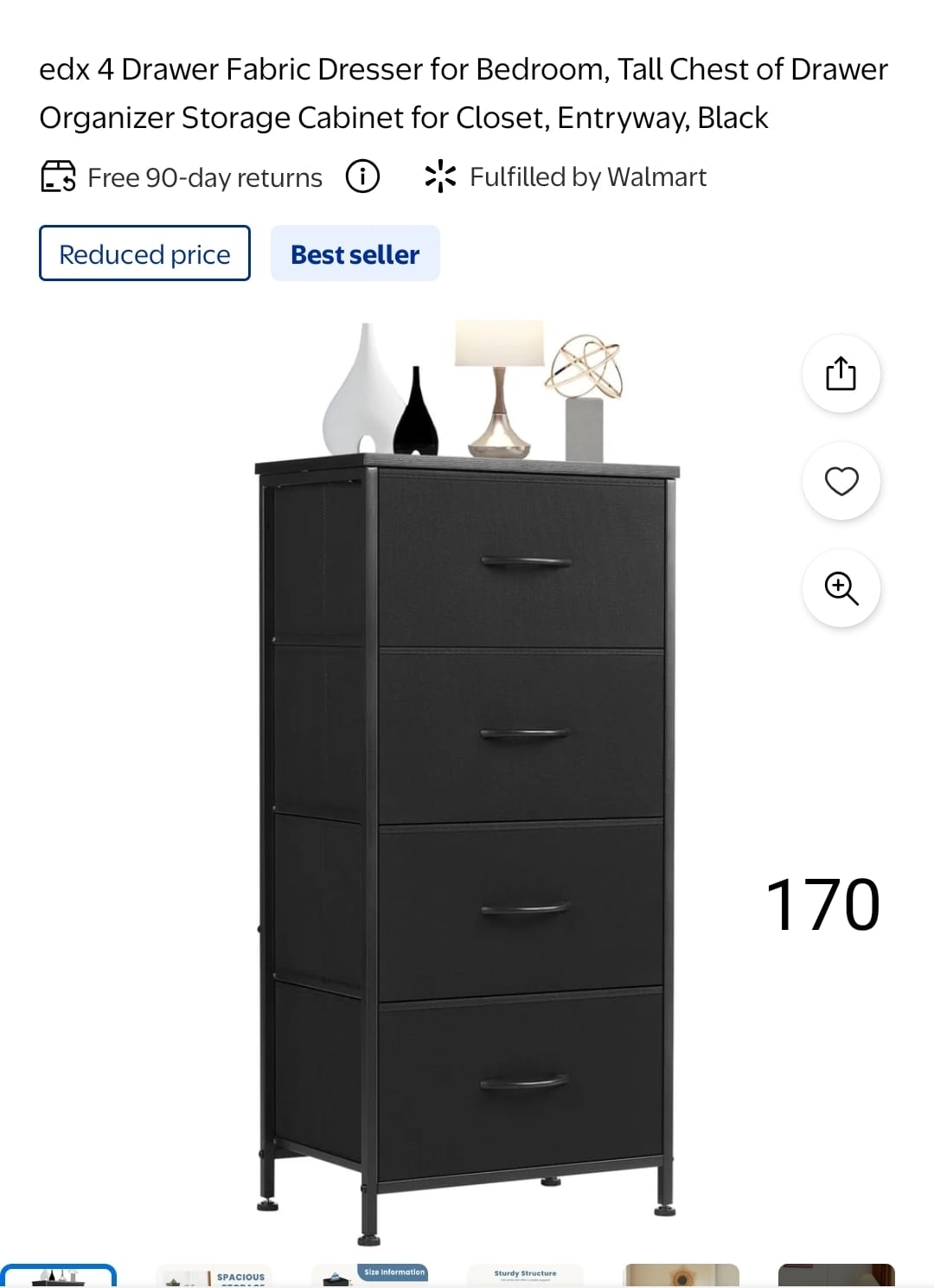 edx 4 Drawer Fabric Dresser for Bedroom, Tall Chest of Drawer Organizer Storage Cabinet for Closet, Entryway. 170