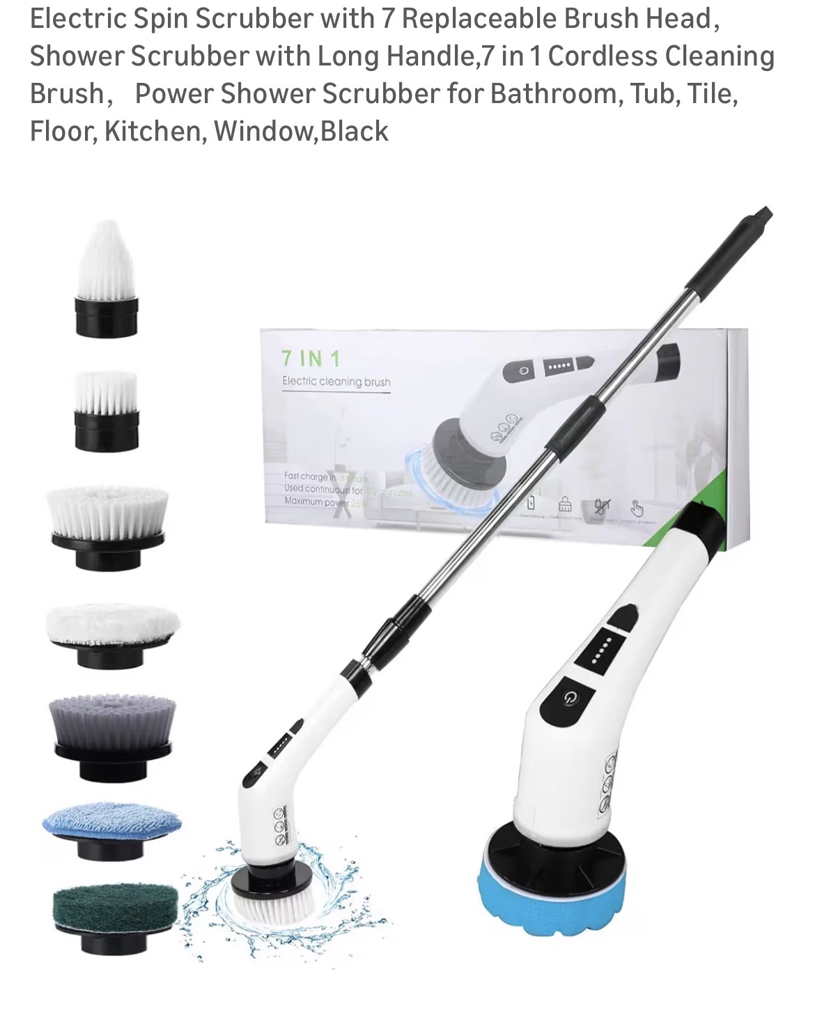 Electric Spin Scrubber with 7 Replaceable Brush Head #D7