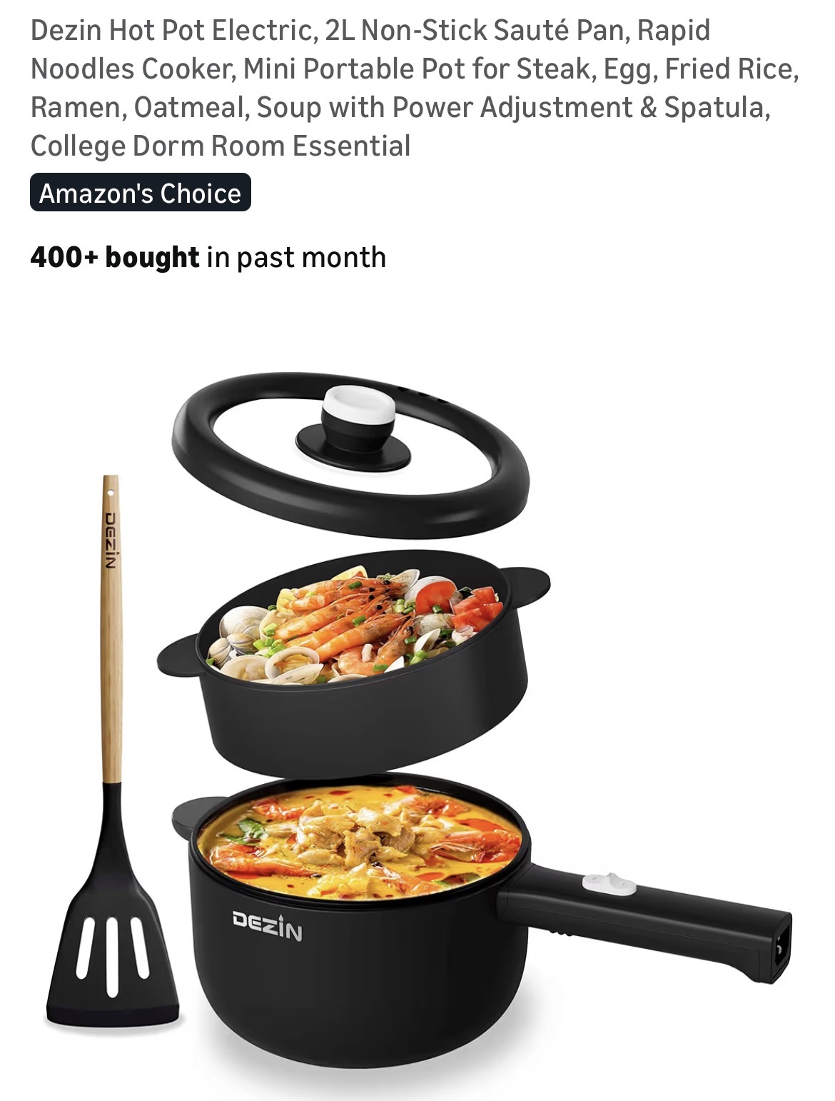 Dezin Hot Pot Electric, 2L Non-Stick Sauté Pan #D20