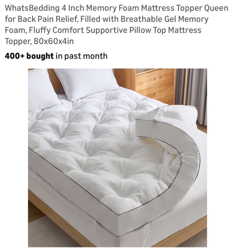 WhatsBedding 4 Inch Memory Foam Mattress Topper Queen for Back Pain Relief #E155