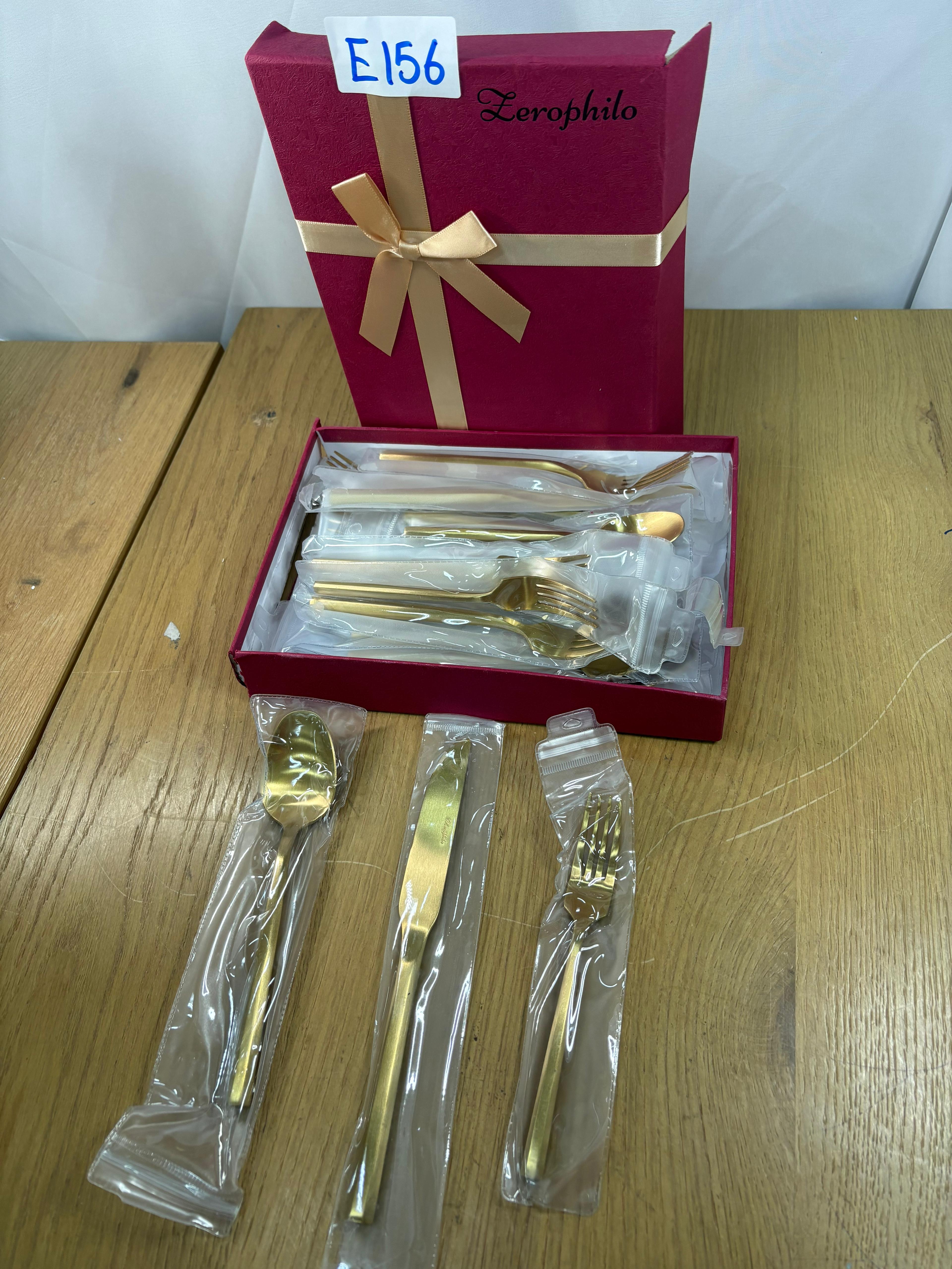 Matte Silverware Set Gold Flatware Set with Hexagon Handle 20 Pieces #E156