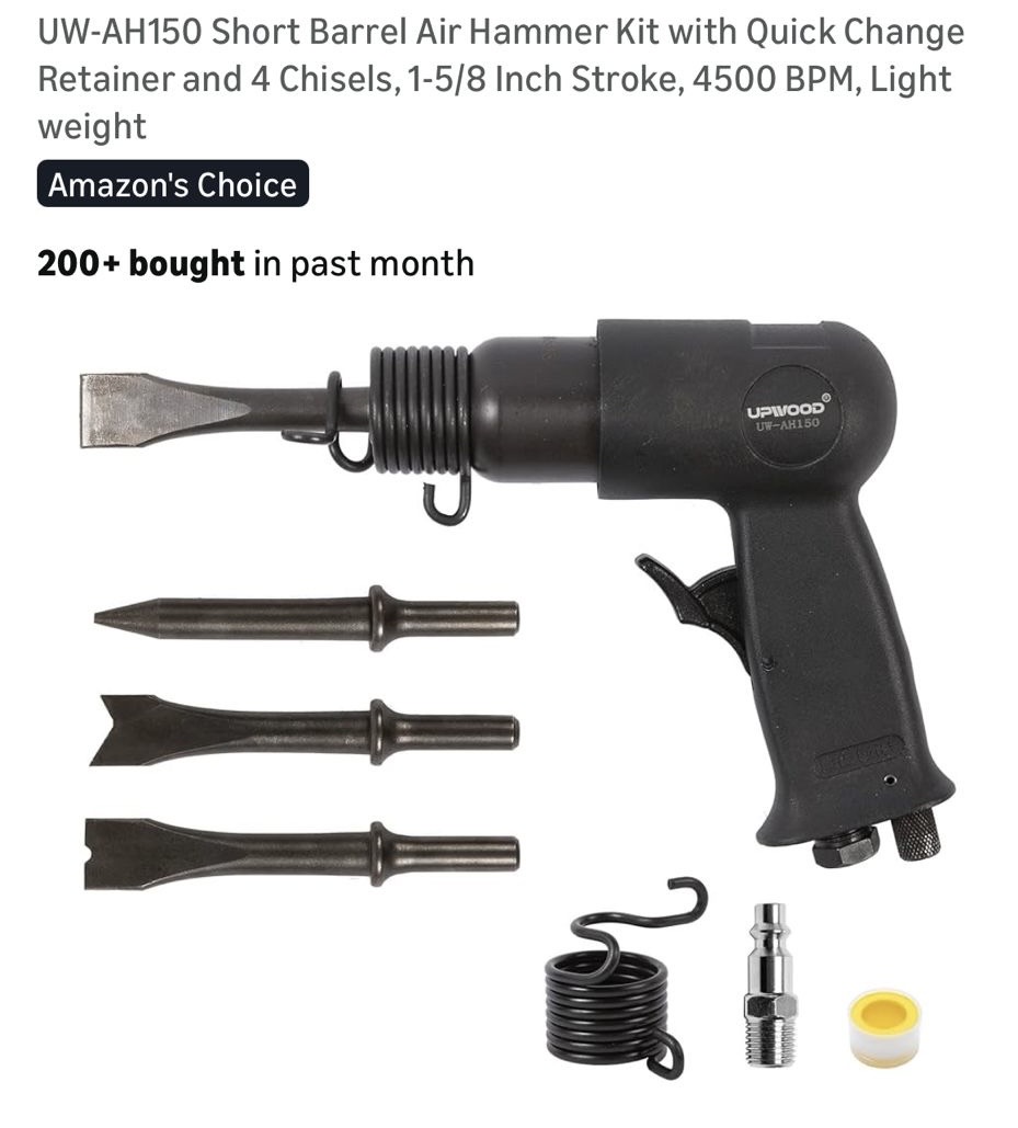 UW-AH150 Short Barrel Air Hammer Kit with Quick Change Retainer and 4 Chisels #E161