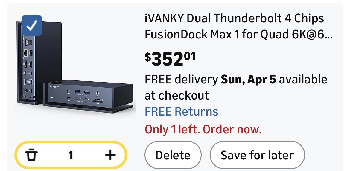 iVANKY Dual Thunderbolt 4 Chips FusionDock Max 1 for Quad 6K@60Hz Display #E204