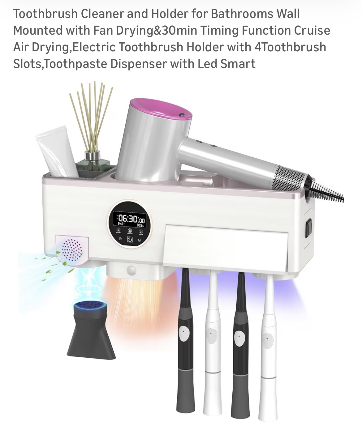 Toothbrush Cleaner and Holder for Bathrooms Wall Mounted with Fan Drying #F206