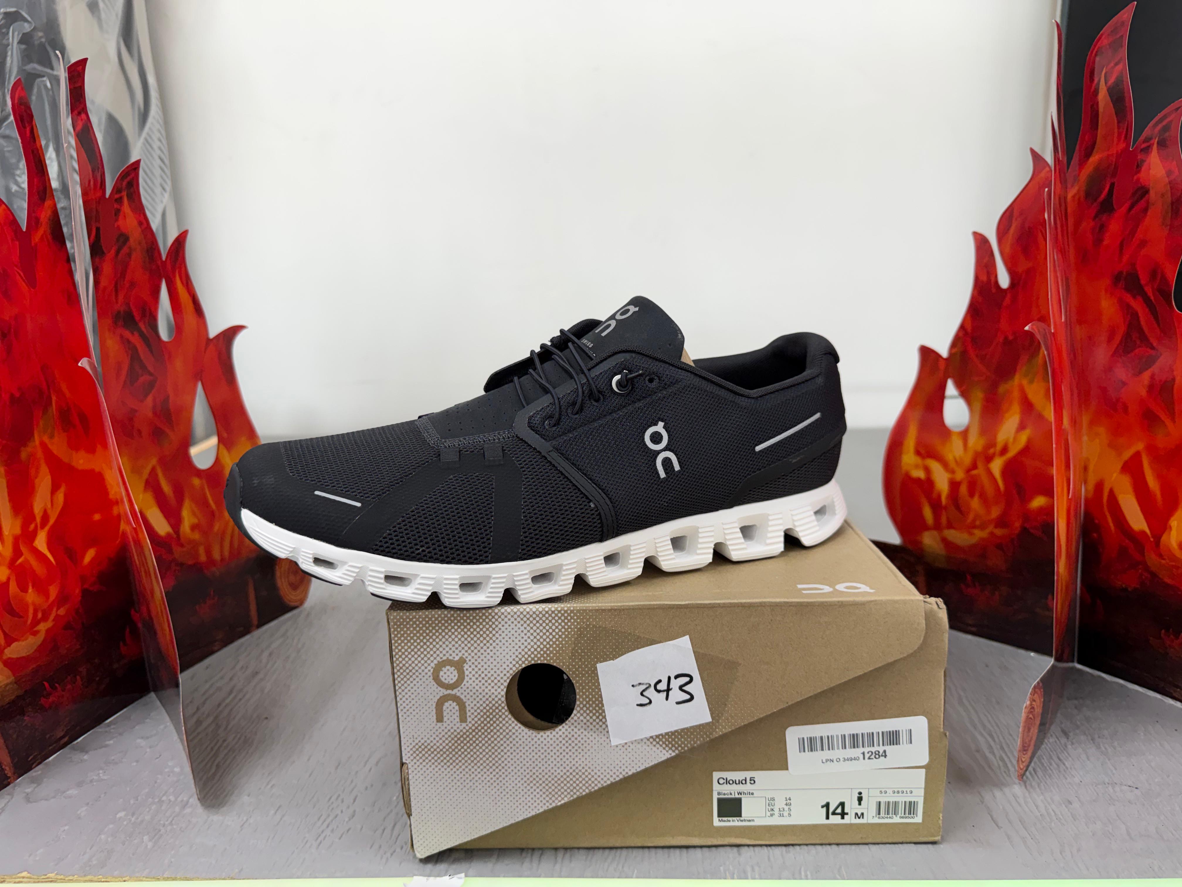 black and white On Running Cloud 5 sneakers. Men Size 14 (F343)