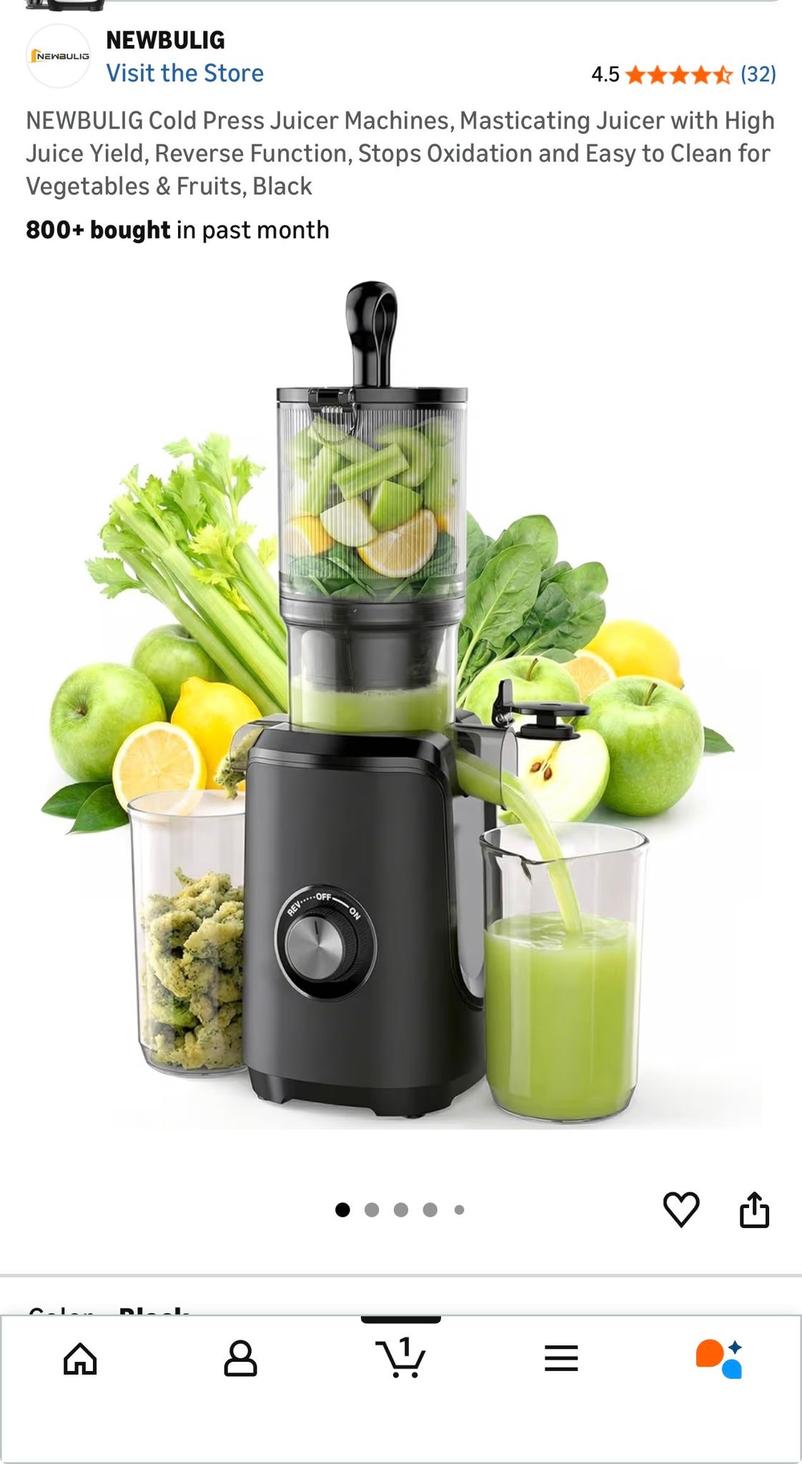 Inoviva Cold Press Slow Juicer, model KBMJ-S01-B. (F316)