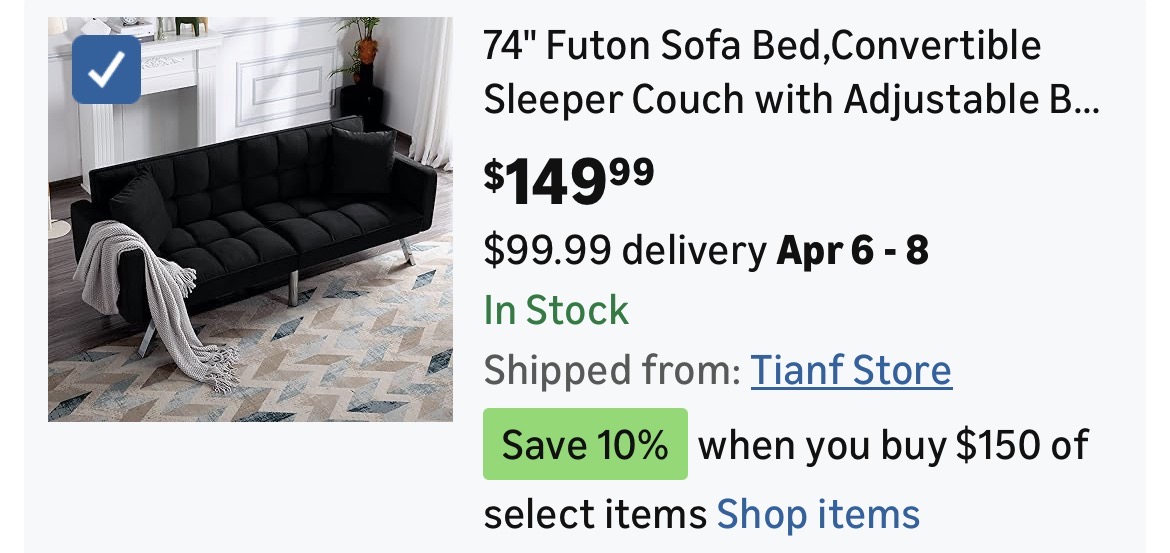 74" Futon Sofa Bed,Convertible Sleeper Couch with Adjustable Backrest and Pillows #F224