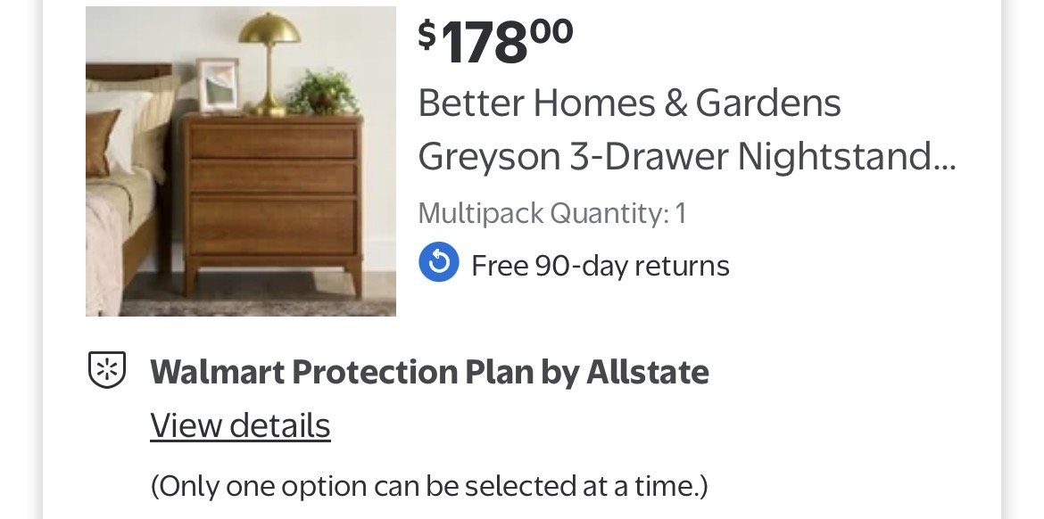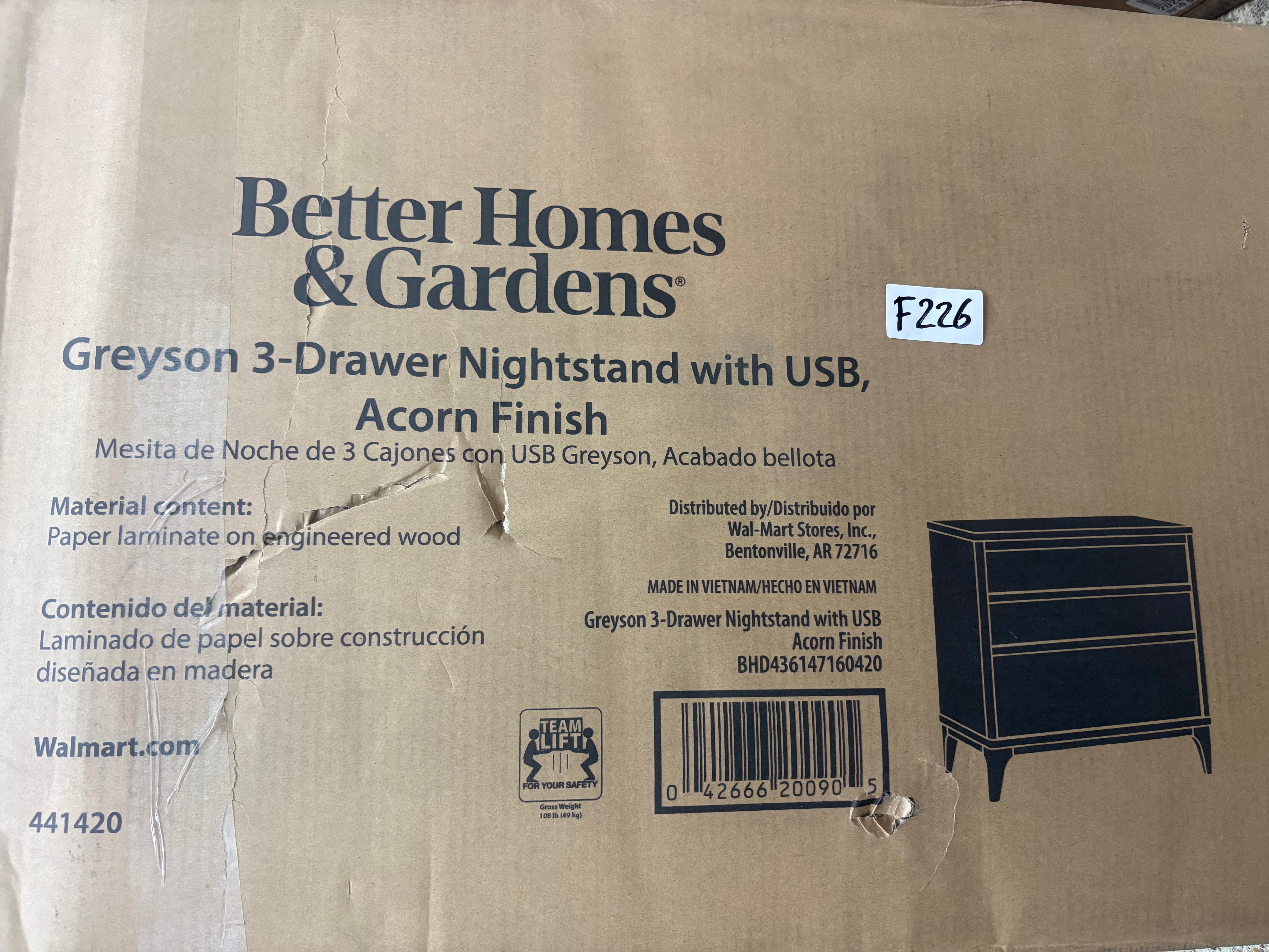 Better Homes & Gardens Greyson 3-Drawer Nightstand with USB, Acorn Finish #F226