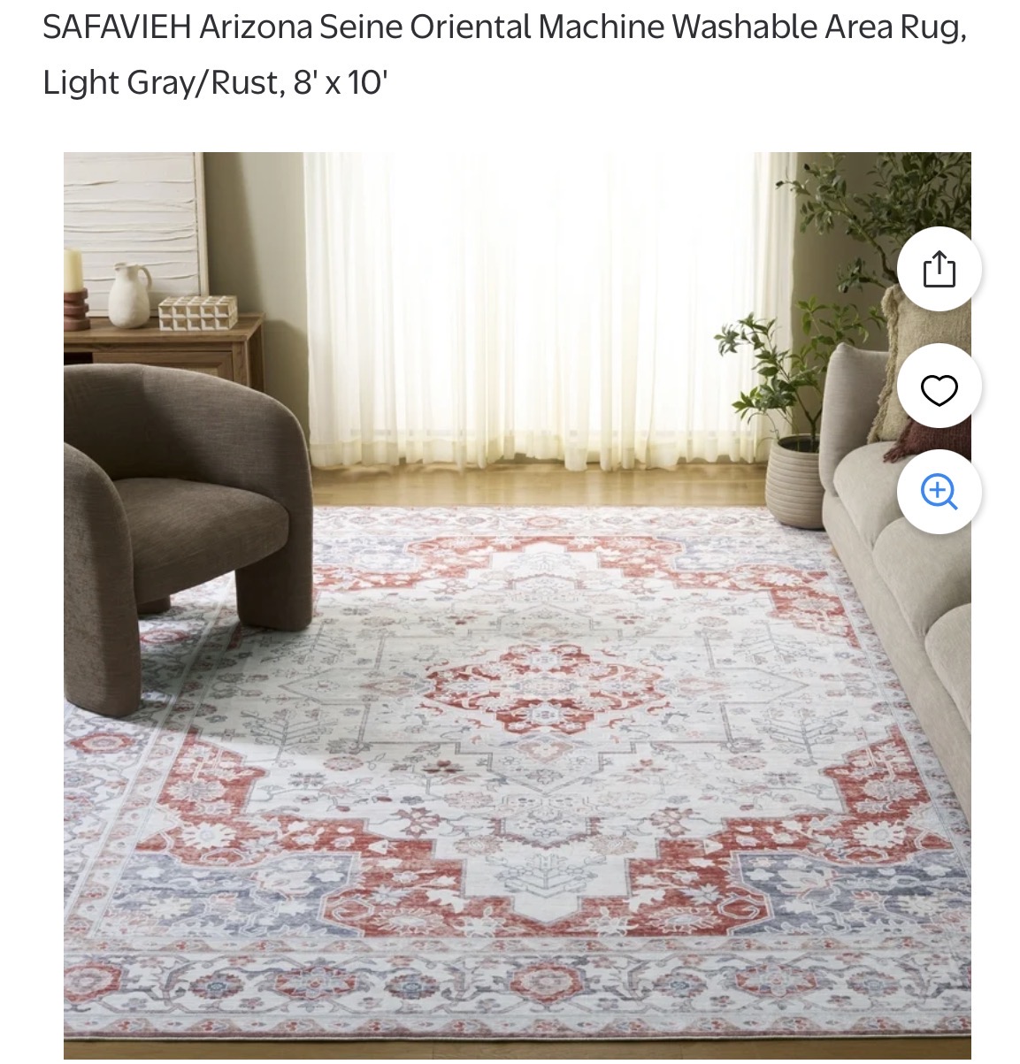 SAFAVIEH Arizona Seine Oriental Machine Washable Area Rug, Light Gray/Rust, 8' x 10 #F229
