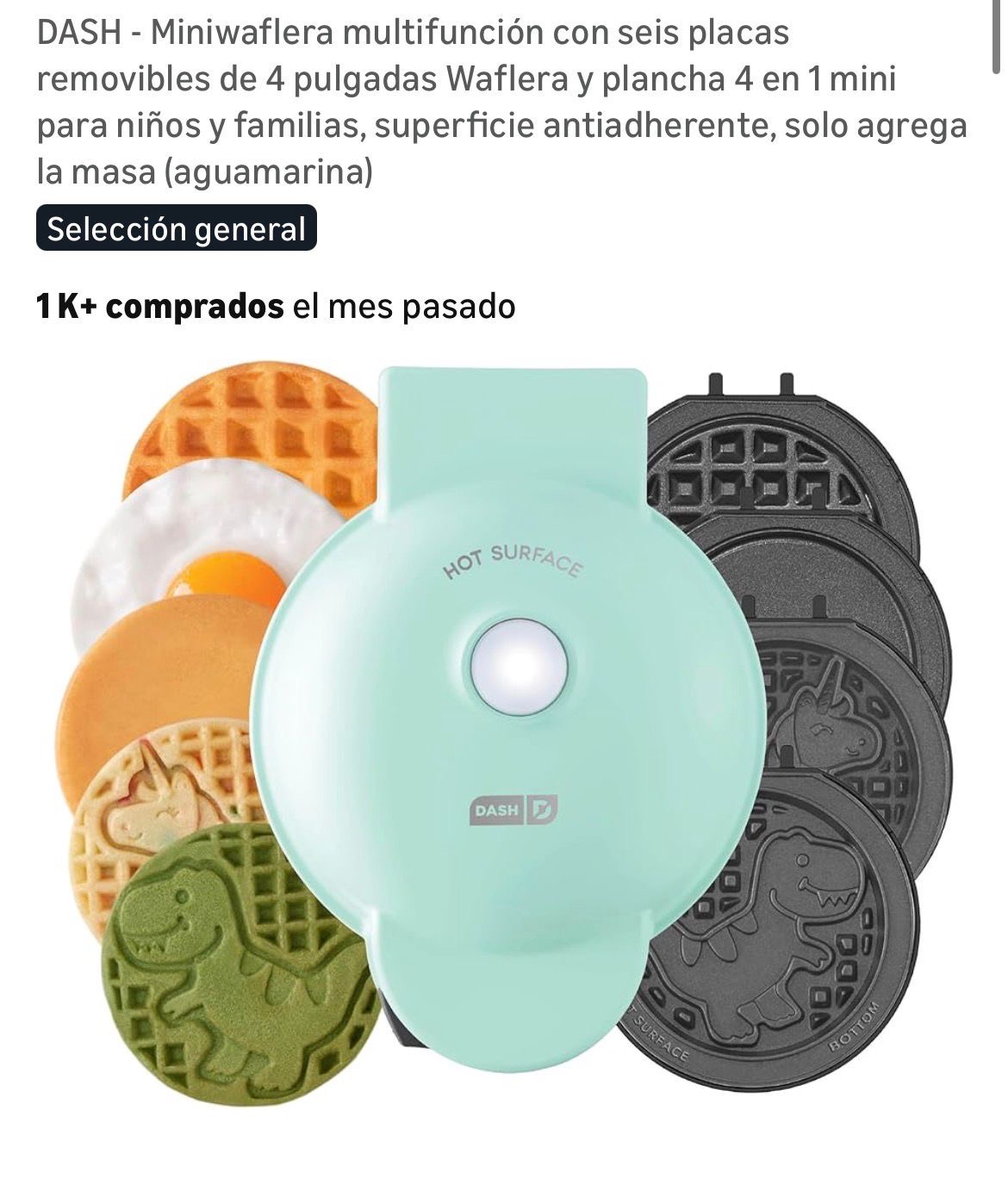 DASH - Miniwaflera multifunción con seis placas removibles de 4 pulgadas Waflera y plancha 4 en 1 mini para niños y familias, superficie antiadherente, solo agrega la masa( F400)