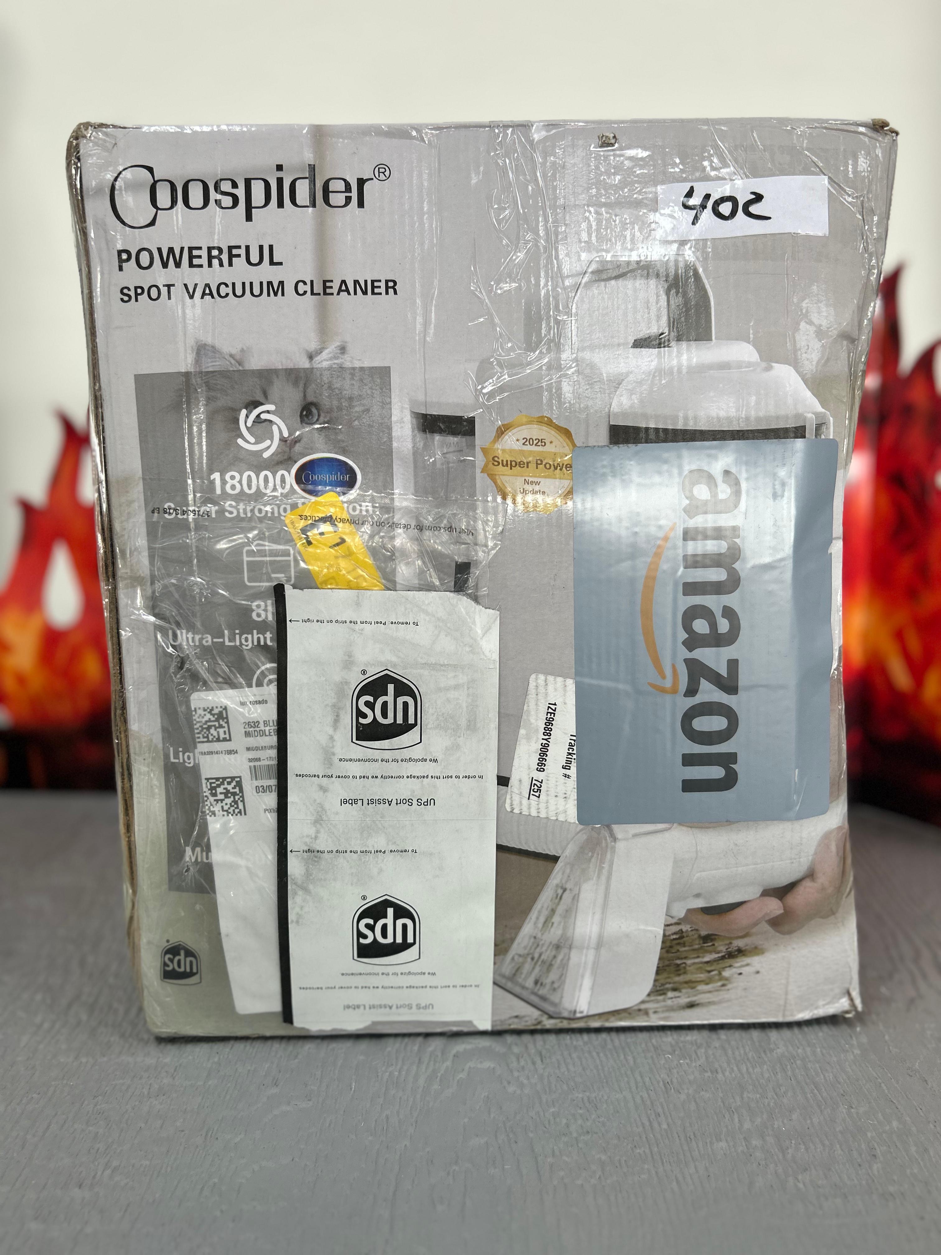 Coospider branded portable spot vacuum cleaner designed for cleaning stains on upholstery and carpets.( F402)
