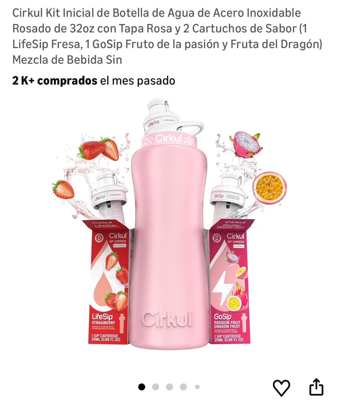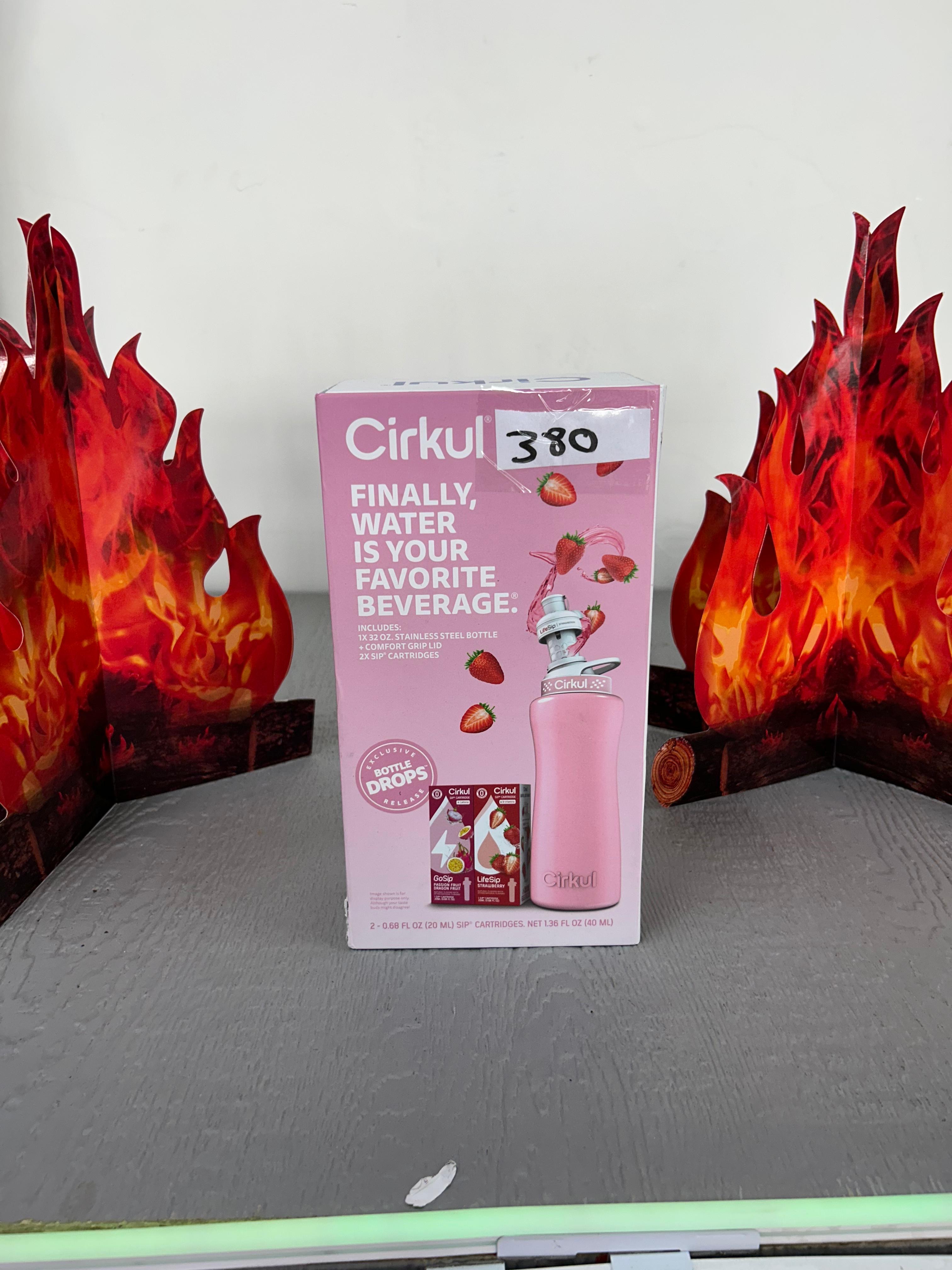 Cirkul 32oz Stainless Steel Starter Kit, which includes a pink insulated stainless steel bottle, a lid, and flavor cartridges.( F380)