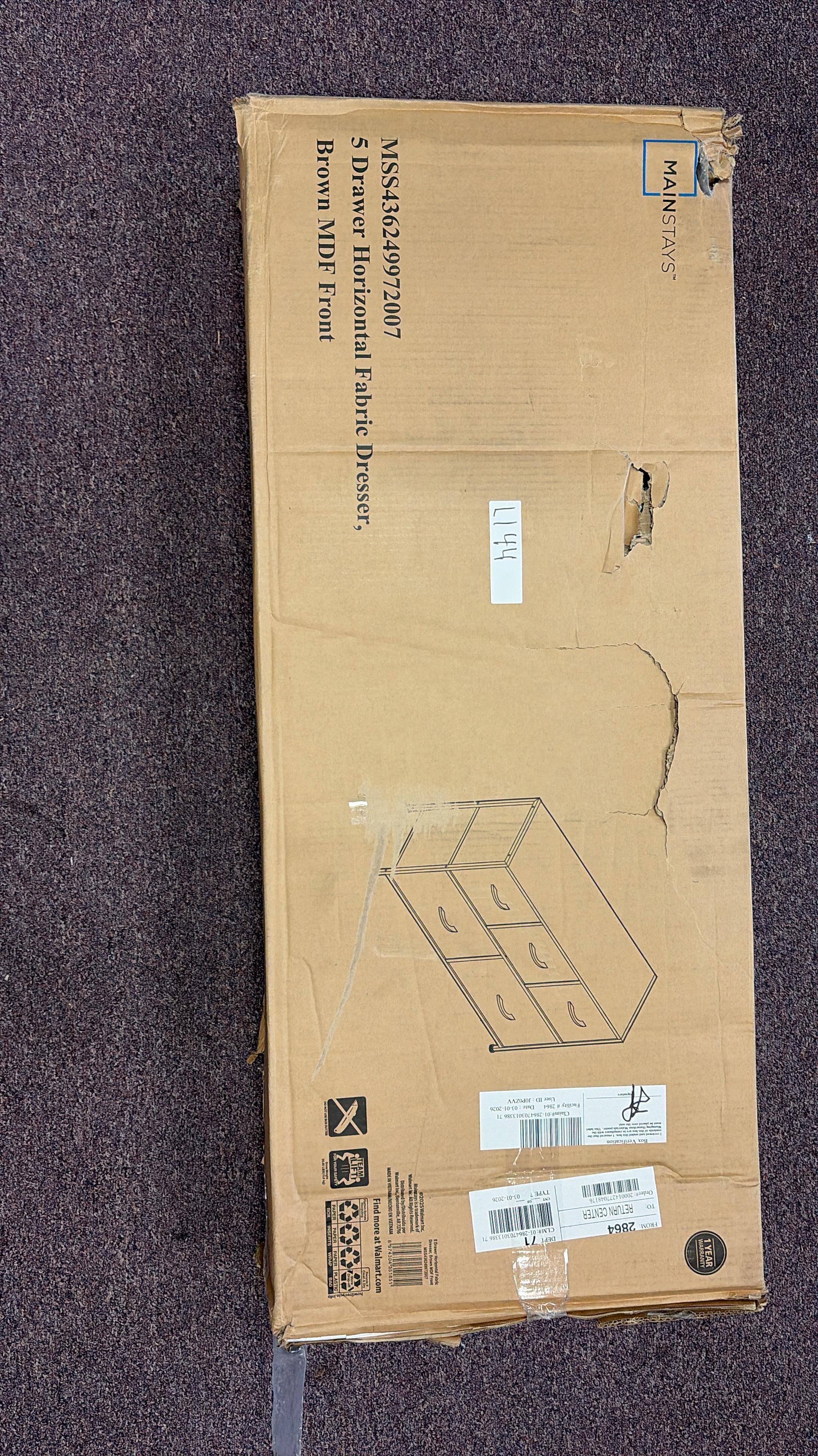 Mainstays 5 Drawer 40" Wide Fabric Storage Dresser for Bedroom #D144