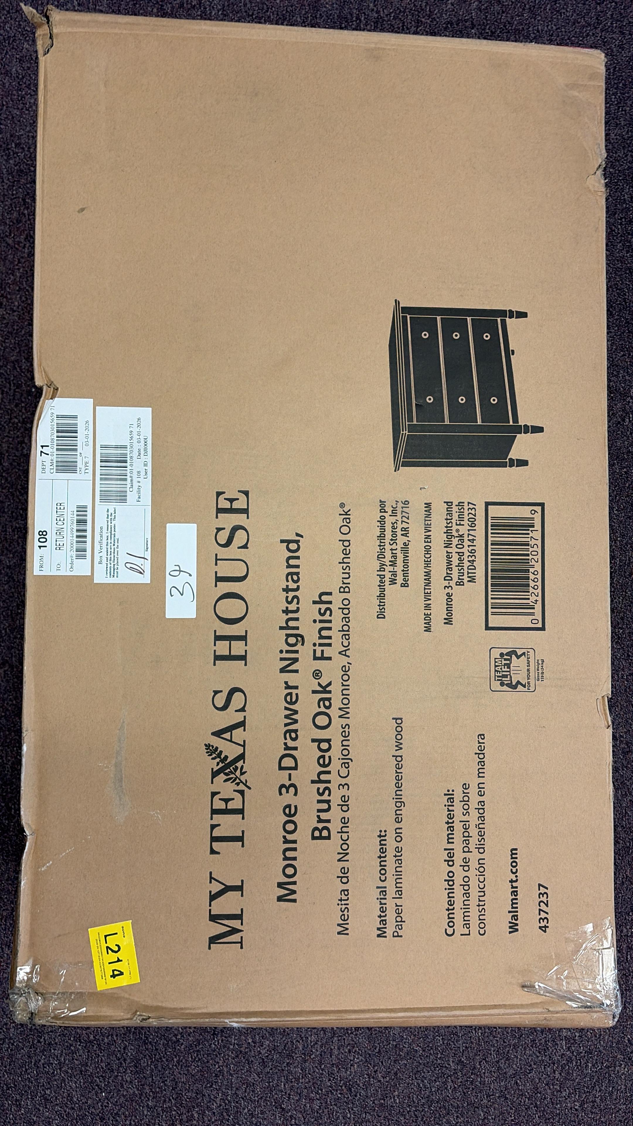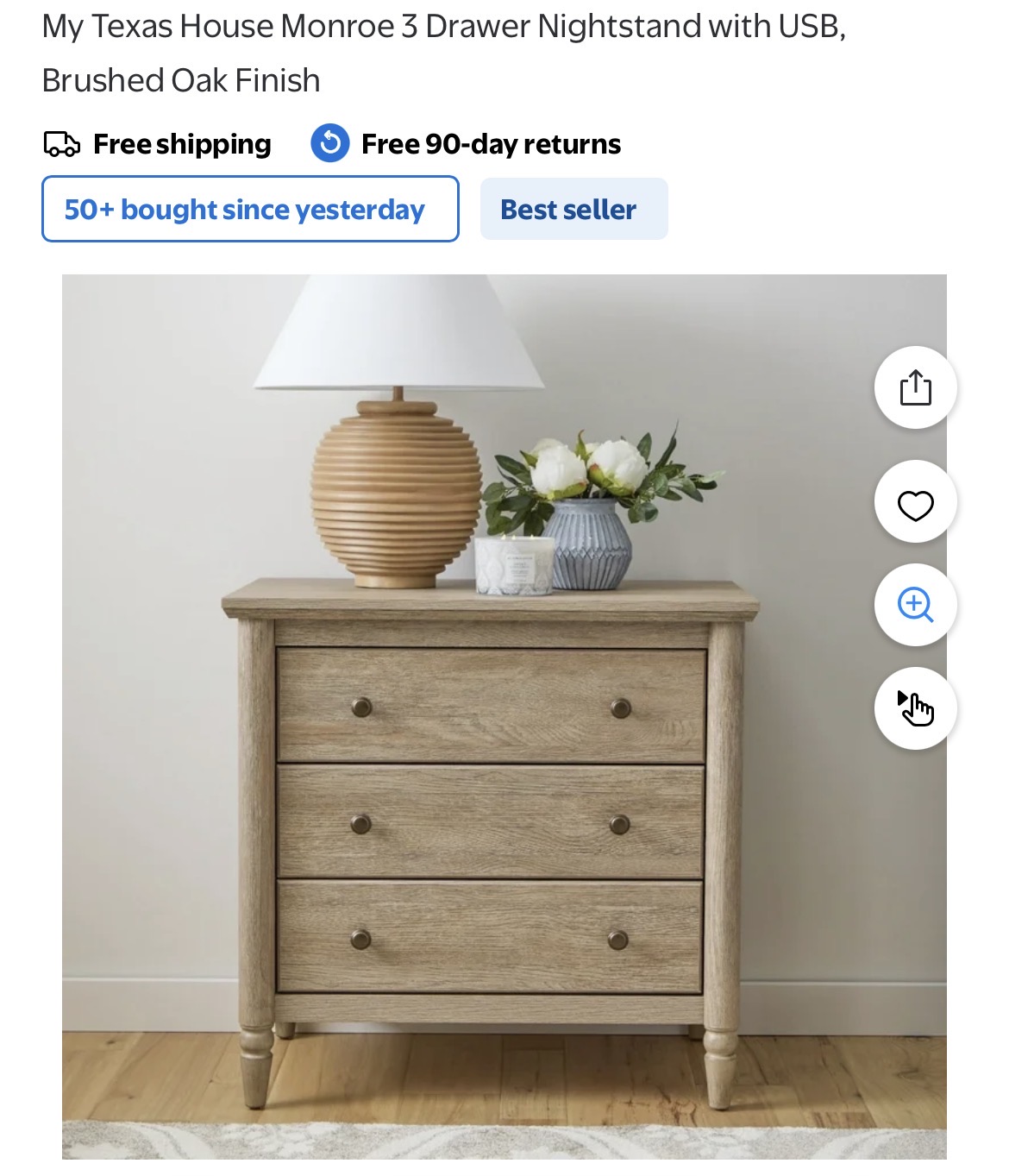 My Texas House Monroe 3 Drawer Nightstand with USB #L145