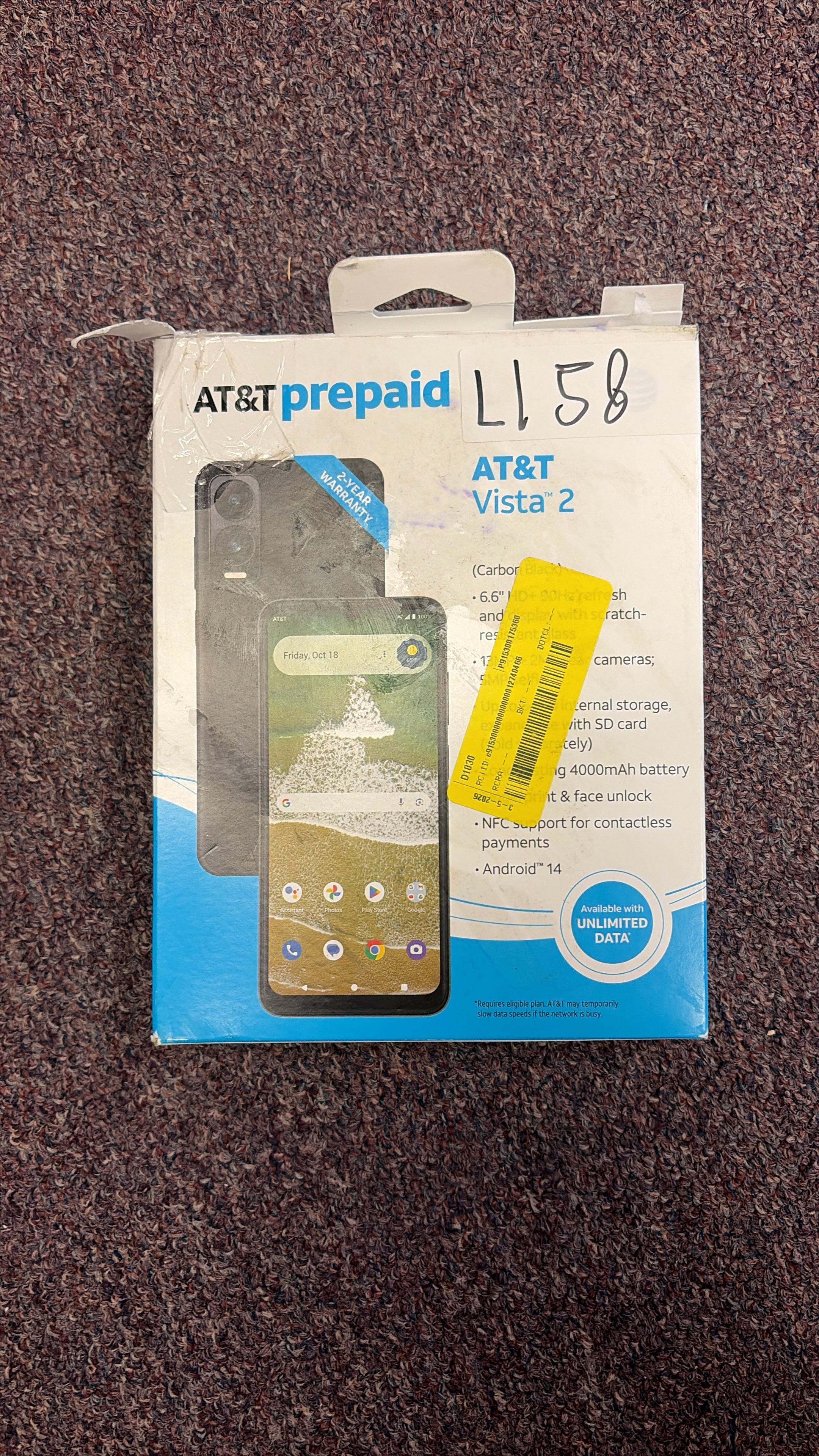 AT&T Vista 2, 64GB, Carbon Black-Prepaid Smartphone #L158