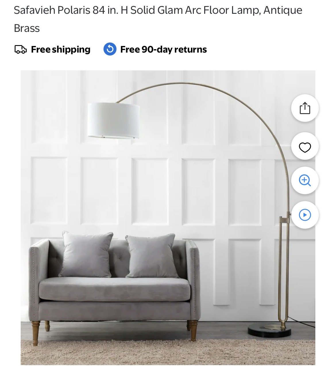 Safavieh Polaris 84 in. H Solid Glam Arc Floor Lamp, Antique Brass #D29