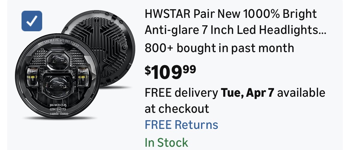 HWSTAR Pair New 1000% Bright Anti-glare 7 Inch Led #D126