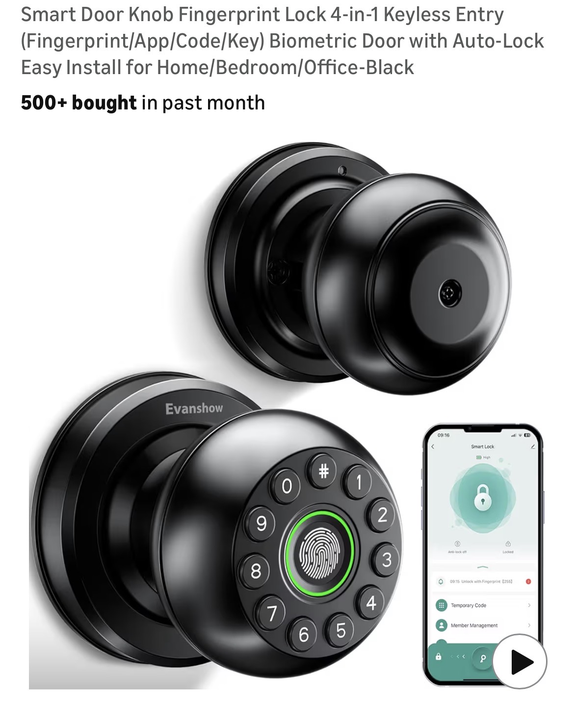 Smart Door Knob Fingerprint Lock #L29