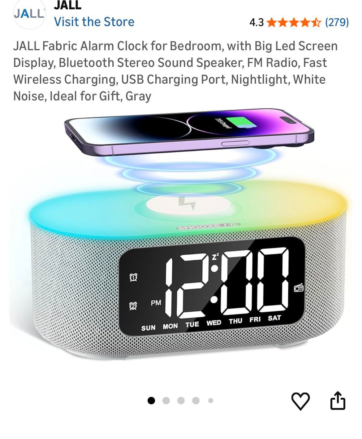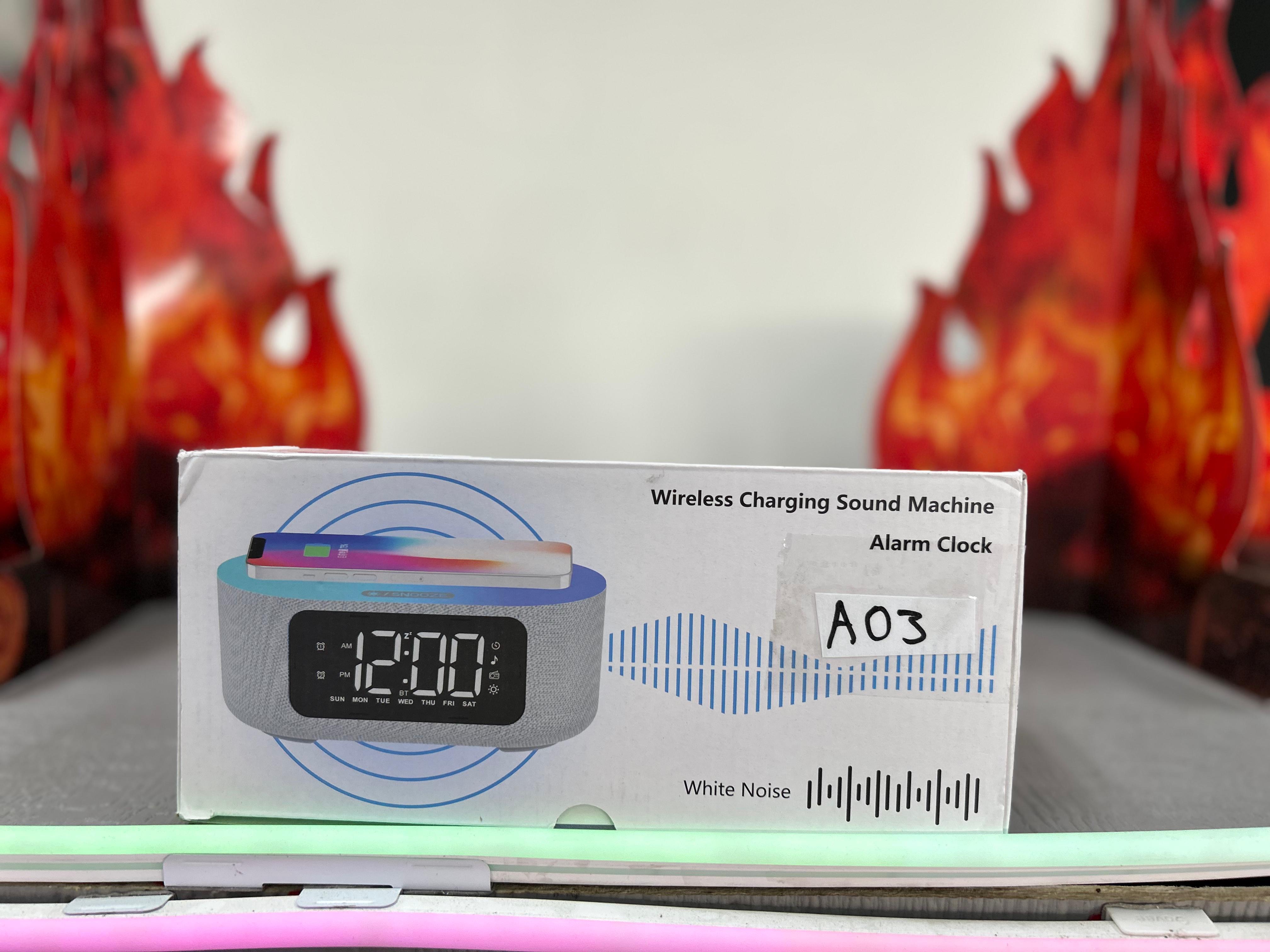 multifunctional wireless charging sound machine alarm clock, similar to models sold by brands like LIORQUE or JALL.( A03)
