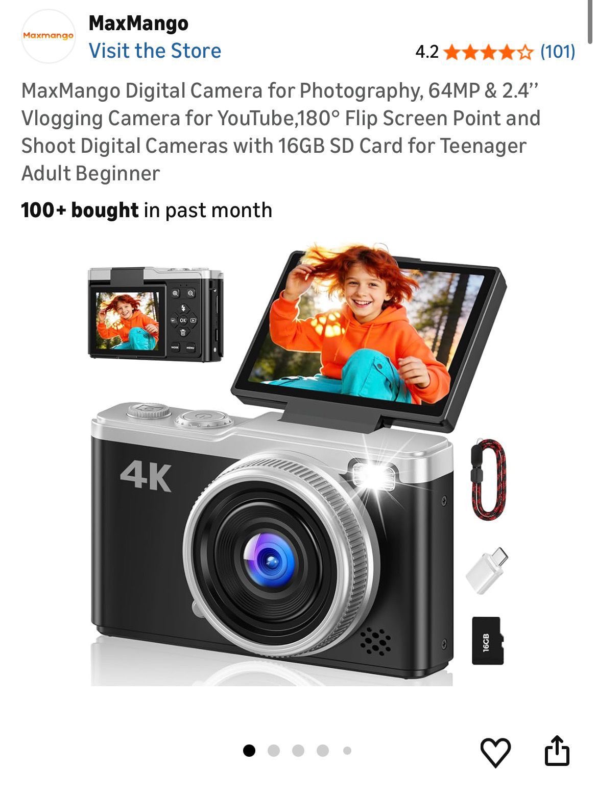 Maxmango 4K digital camera, likely a budget-friendly option for photography or vlogging. (A13)
