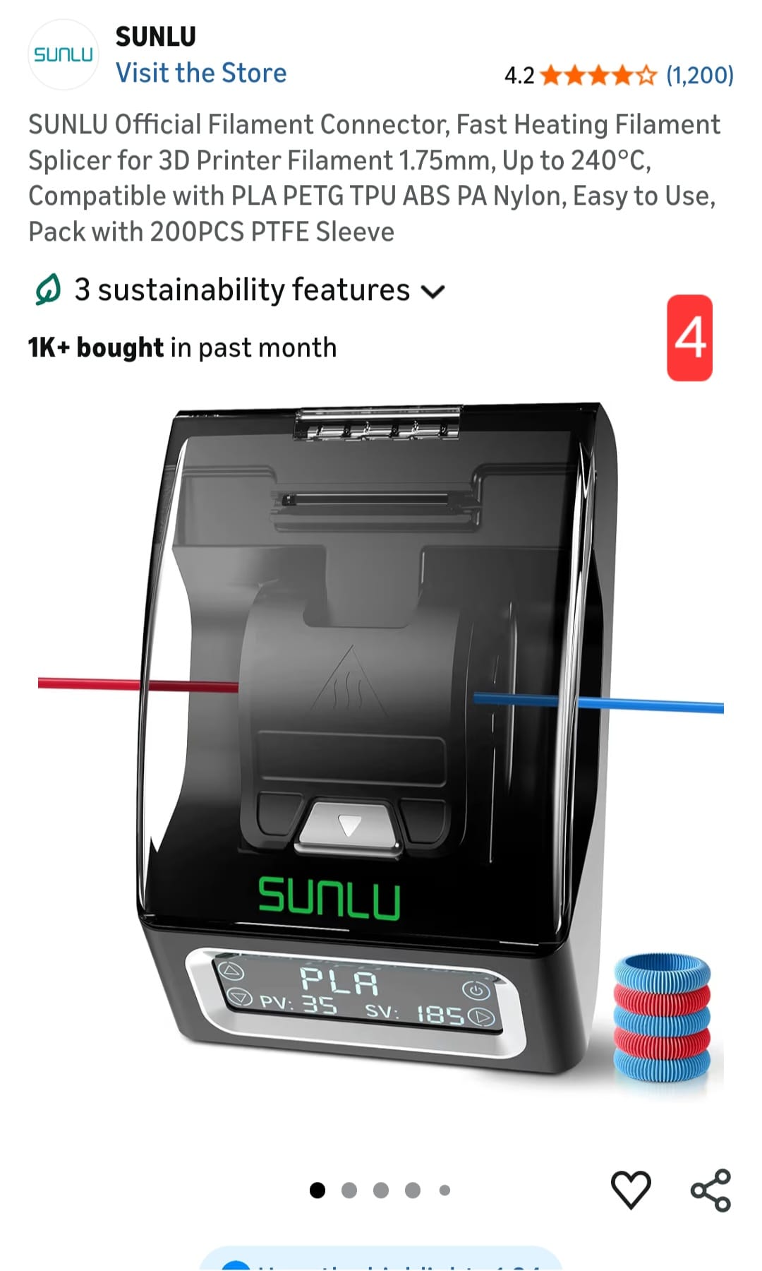 SUNLU Official Filament Connector, Fast Heating Filament Splicer for 3D Printer Filament. 4