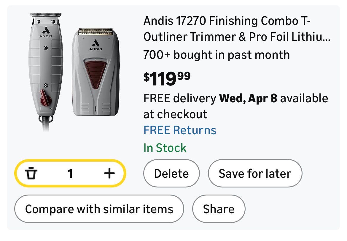 Andis Finishing Combo, a professional grooming kit containing a T-Outliner trimmer and a ProFoil shaver.( A71)