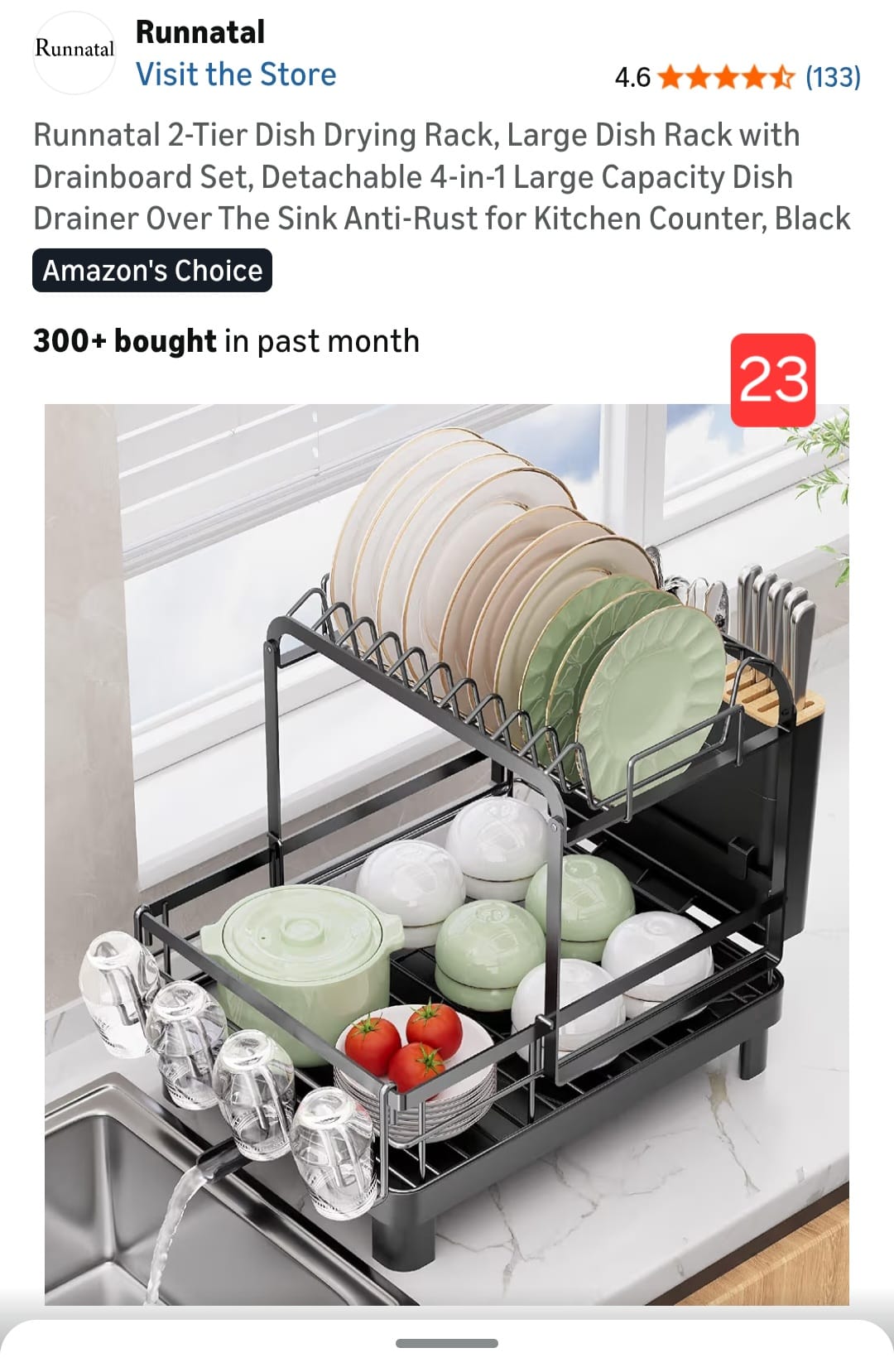Runnatal 2-Tier Dish Drying Rack, Large Dish Rack with Drainboard Set, Detachable 4-in-1 Large Capacity Dish Drainer Over The Sink Anti-Rust for Kitchen Counter, Black. 23