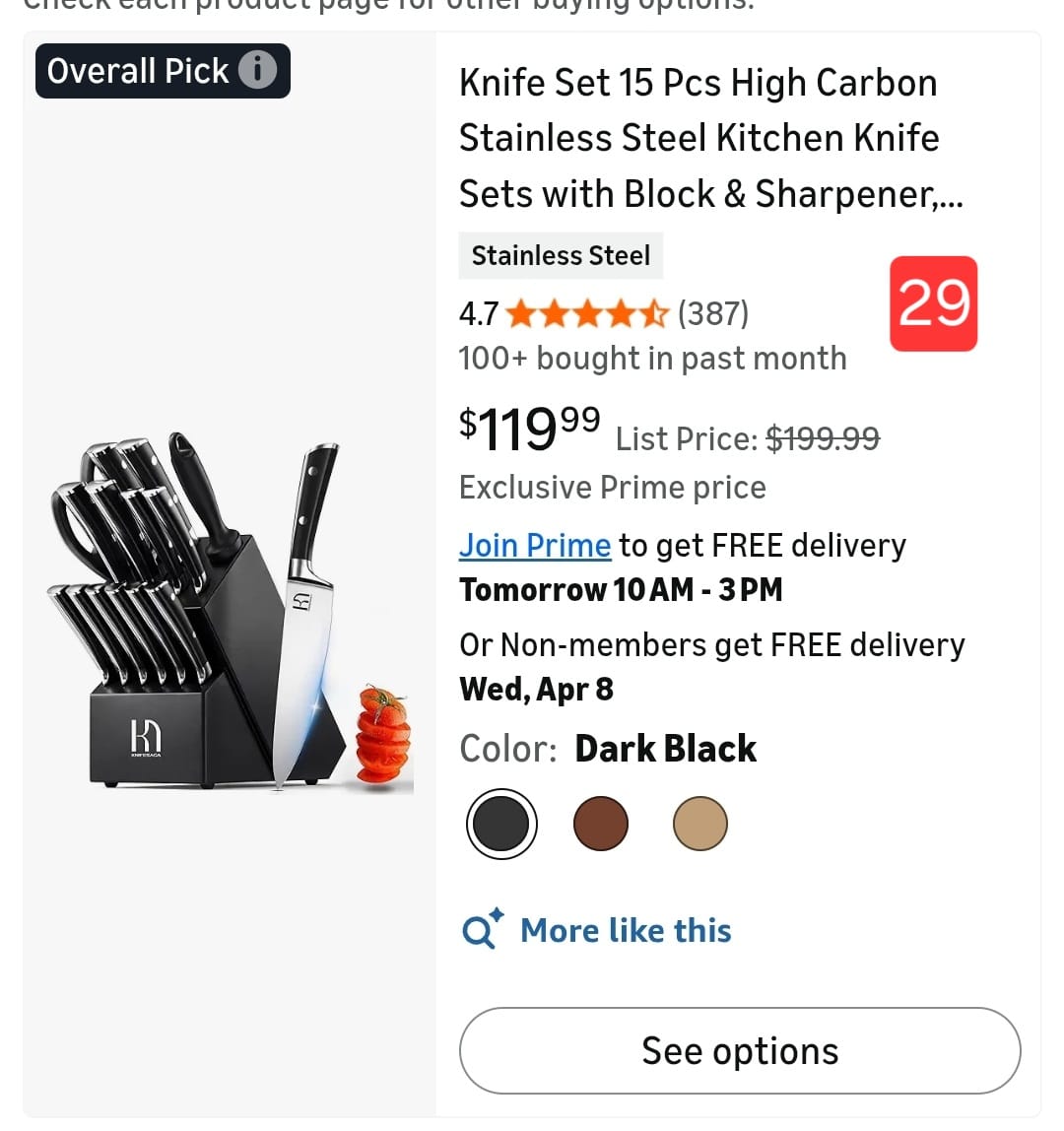 Knife Set 15 Pcs High Carbon Stainless Steel Kitchen Knife Sets with Block & Sharpener. 29