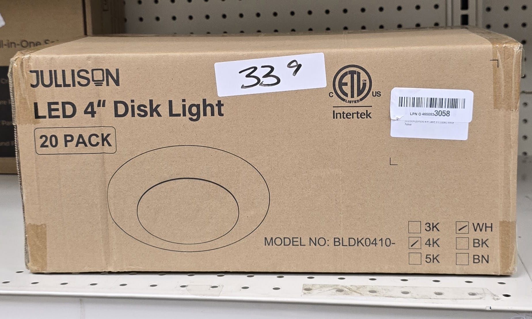 20 Packs 4 Inch LED Low Profile Recessed & Surface Mount Disk Light, Round, 10W, >600 Lumen. 33