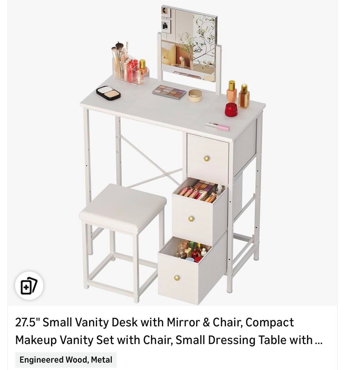 27.5" Small Vanity Desk with Mirror & Chair, Compact Makeup Vanity Set with Chair, Small Dressing Table (A100)
