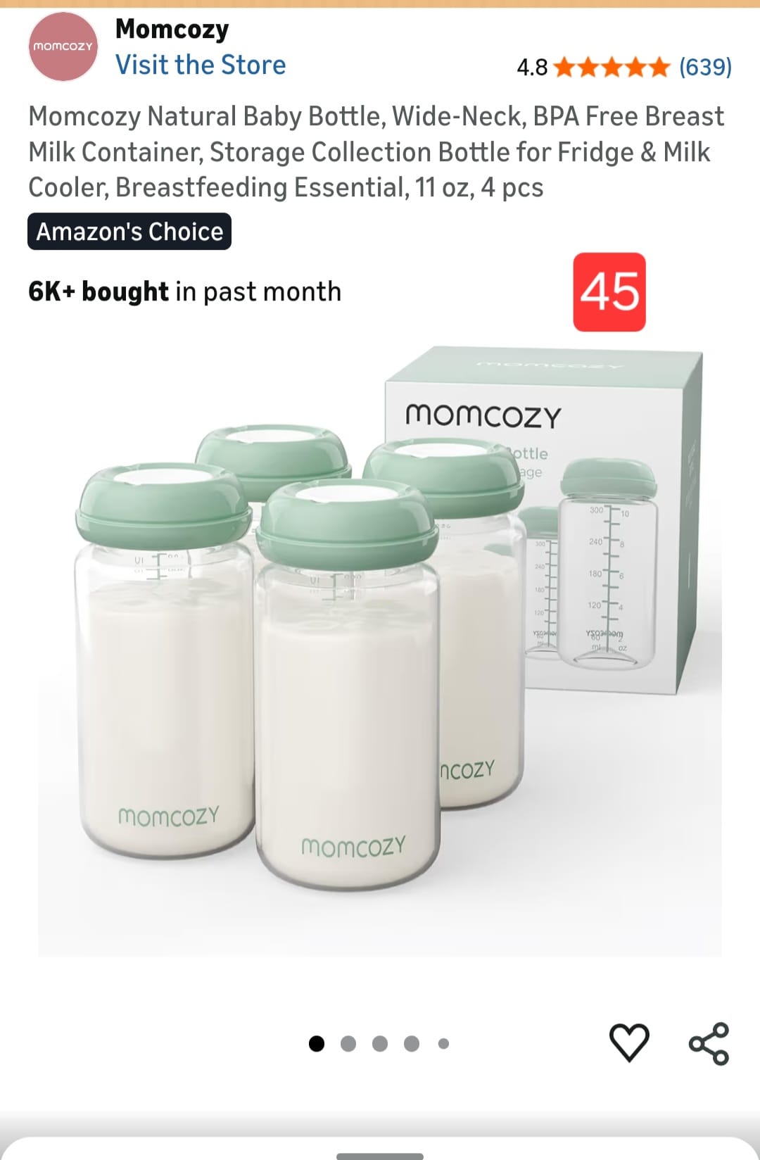 Momcozy Natural Baby Bottle, Wide-Neck, BPA Free Breast Milk Container, Storage Collection Bottle for Fridge & Milk Cooler, Breastfeeding Essential, 11 oz, 4 pcs. 45